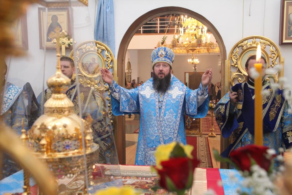 Праздничная Литургия завершилась славлением Господу Иисусу Христу и Его Пречистой Матери, после чего Преосвященнейший Архипастырь обратился ко всем собравшимся со словами проповеди.