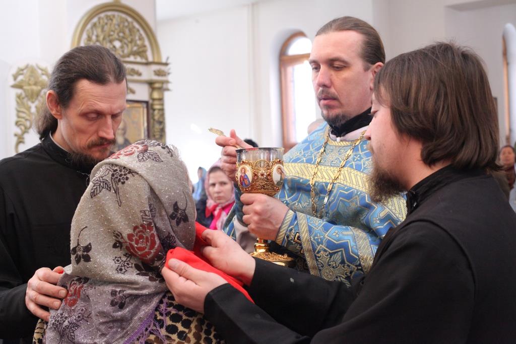Перед причастием мирян ключарь собора огласил всем собравшимся Обращение Святейшего Патриарха Московского и всея Руси Кирилла в связи с празднованием Дня православной молодежи.