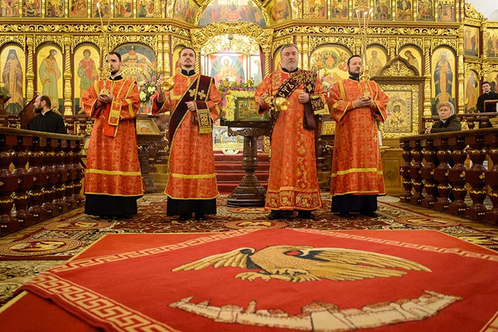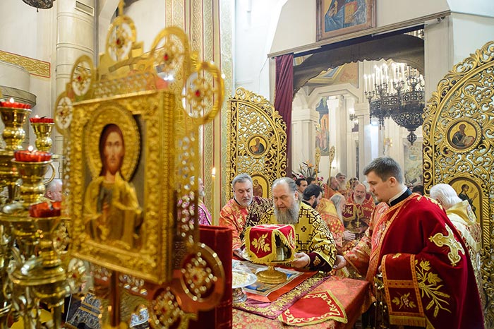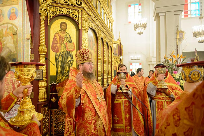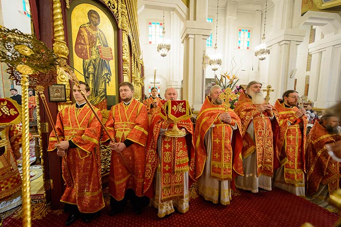 Песнопения Литургии исполняли хор Митрополичьего округа под управлением Заслуженного деятеля искусств России О.Н. Овчинникова и хор Вознесенского собора под управлением Н. Зубревич.
