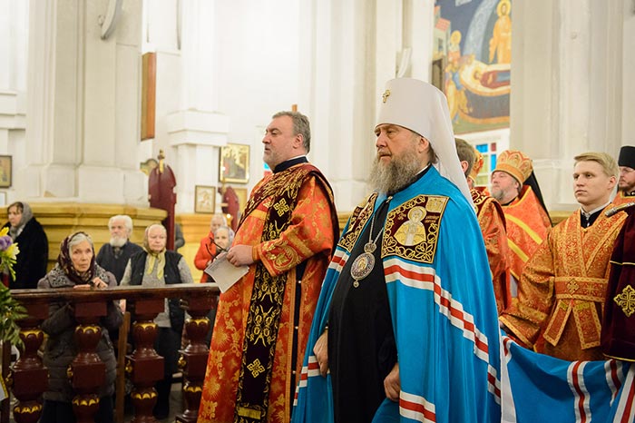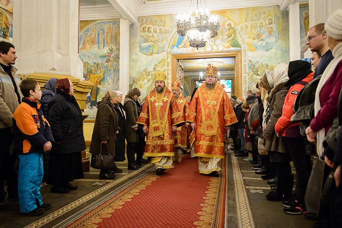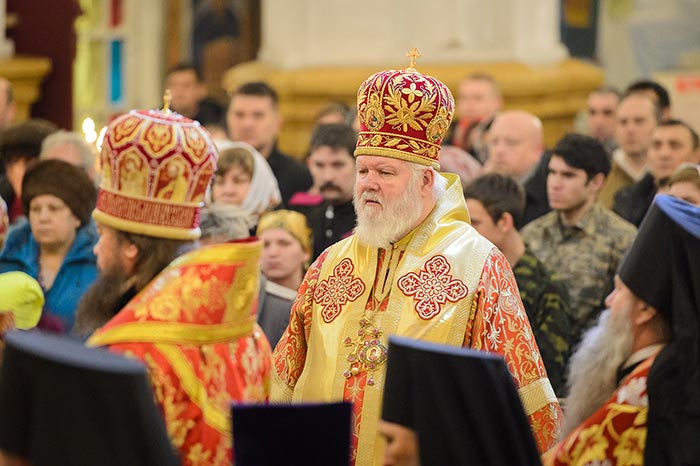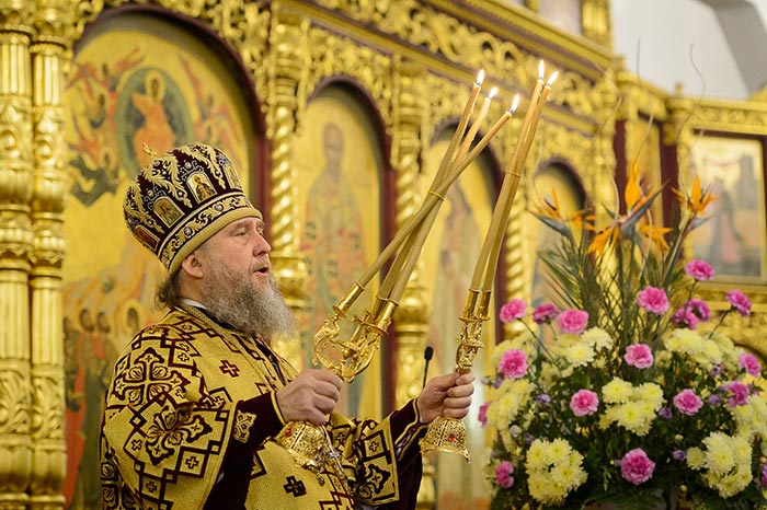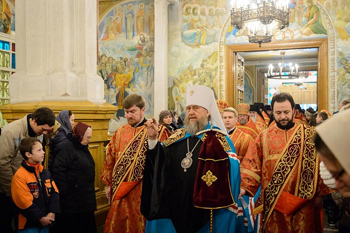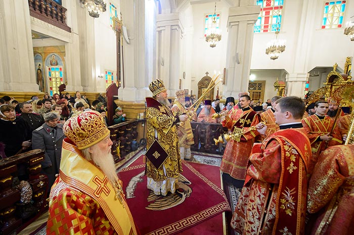 В завершение Литургии состоялось славление Сретению Господню – духовенство и хор исполнили тропарь, кондак и величание празднику, после чего было провозглашено многолетие Предстоятелю Русской Православной Церкви Святейшему Патриарху Московскому и всея Руси Кириллу; Главе, архипастырям, духовенству и пастве Казахстанского Митрополичьего округа; Президенту, властям, воинству и всему народу Казахстана. Митрополит Александр тепло поблагодарил иерархов, священнослужителей и всех участников Литургии за общую молитву в главном храме Южной столицы Казахстана и обратился с проповедью.