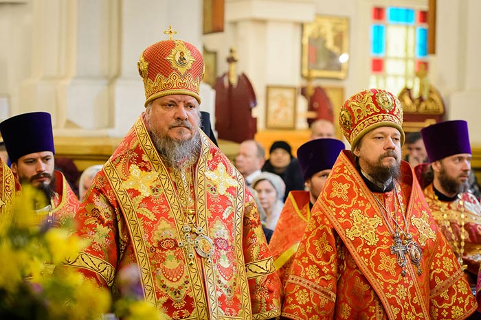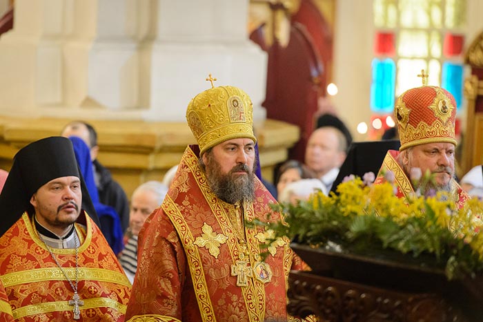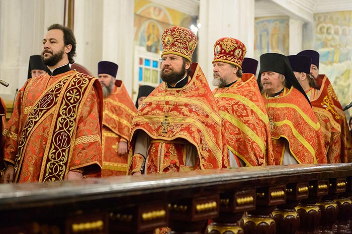 Главе Казахстанского Митрополичьего округа сослужили: архиепископ Уральский и Актюбинский Антоний, архиепископ Чимкентский и Таразский Елевферий, епископ Костанайский и Рудненский Анатолий, викарий Астанайской епархии, епископ Талдыкорганский Нектарий, Управляющий делами Православной Церкви Казахстана епископ Каскеленский Геннадий, епископ Павлодарский и Экибастузский Варнава, епископ Карагандинский и Шахтинский Севастиан, епископ Усть-Каменогорский и Семипалатинский Амфилохий, епископ Кокшетауский и Акмолинский Серапион, епископ Петропавловский и Булаевский Владимир; благочинный храмов Алма-Аты, настоятель Свято-Никольского собора протоиерей Валерий Захаров, благочинный приходов Астаны архимандрит Сергий (Карамышев), руководители епархиальных отделов и комиссий в священном сане, настоятели и духовенство храмов Алма-Атинской епархии, священнослужители, прибывшие с гостями-архипастырями.