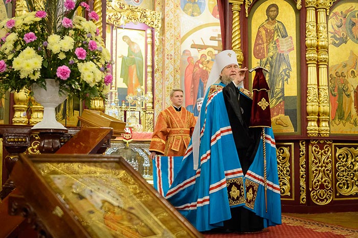 Митрополит Астанайский и Казахстанский Александр совершил Божественную Литургию в Вознесенском кафедральном соборе города Алма-Аты.
