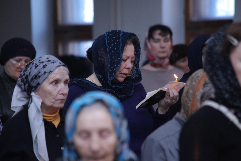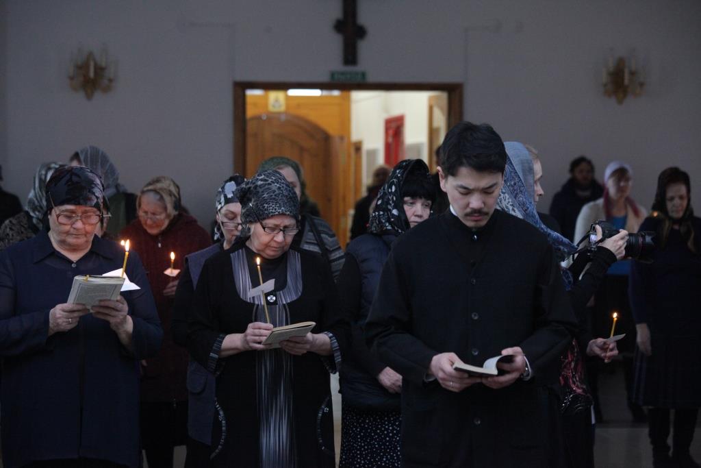 В первый день наступившего Великого поста в Свято-Андреевском кафедральном соборе столицы Рудного Алтая были совершены уставные великопостные богослужения – утреня, часы, изобразительны и вечерня. В великопостный период Церковь отлагает в богослужении всякую торжественность. И прежде всего она не совершает самого торжественного христианского богослужения - полной литургии в седмичные дни Великого поста, за исключением суббот и воскресений. Вместо нее полагается по средам и пятницам литургия Преждеосвященных Даров. Вместо радостного благовествования Евангелия Христова верующим предлагается чтение из ветхозаветных Писаний. Особенно широко используется чтение Псалтири, которая наиболее благоприятно способствует возбуждению молитвенного и покаянного духа. Во все церковные службы вводится молитва преподобного Ефрема Сирина с великими поклонами.