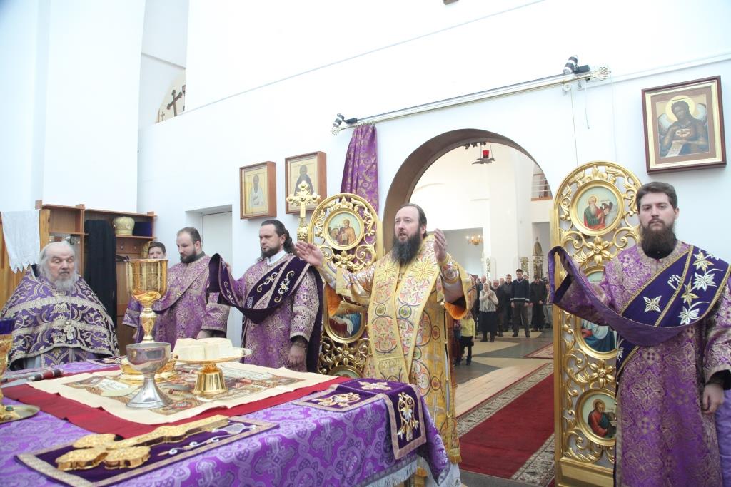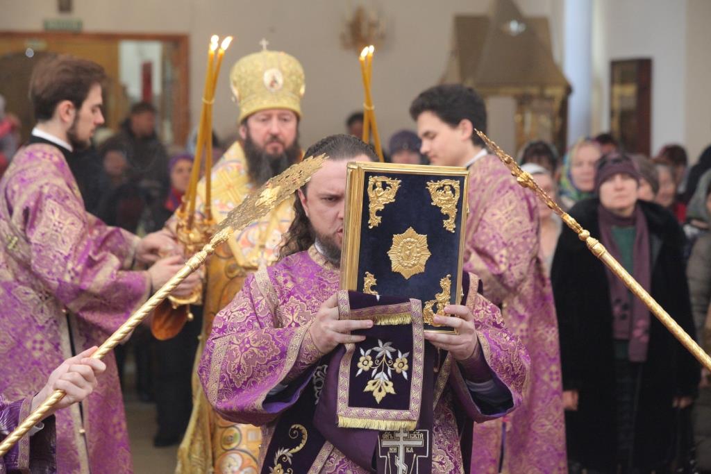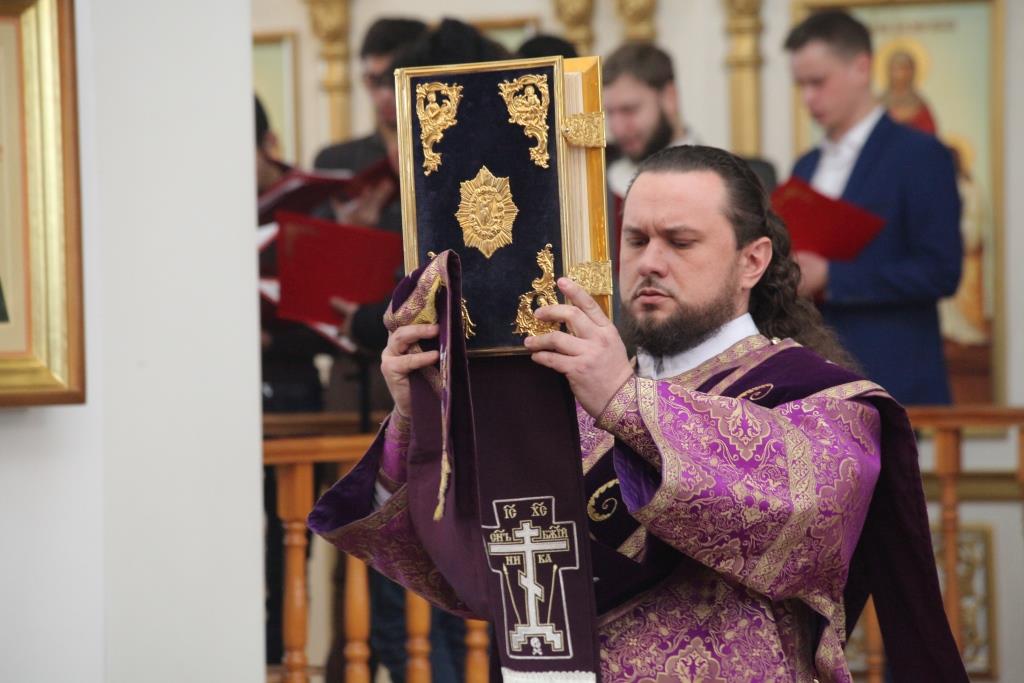 На запричастном стихе иеродиакон Мефодий (Шевчук) совместно с хором исполнил торжественное песнопение «Утверди, Боже, святую православную веру», после чего ключарь кафедрального собора произнёс проповедь, посвященную подвигу поста и празднику торжества Православия.