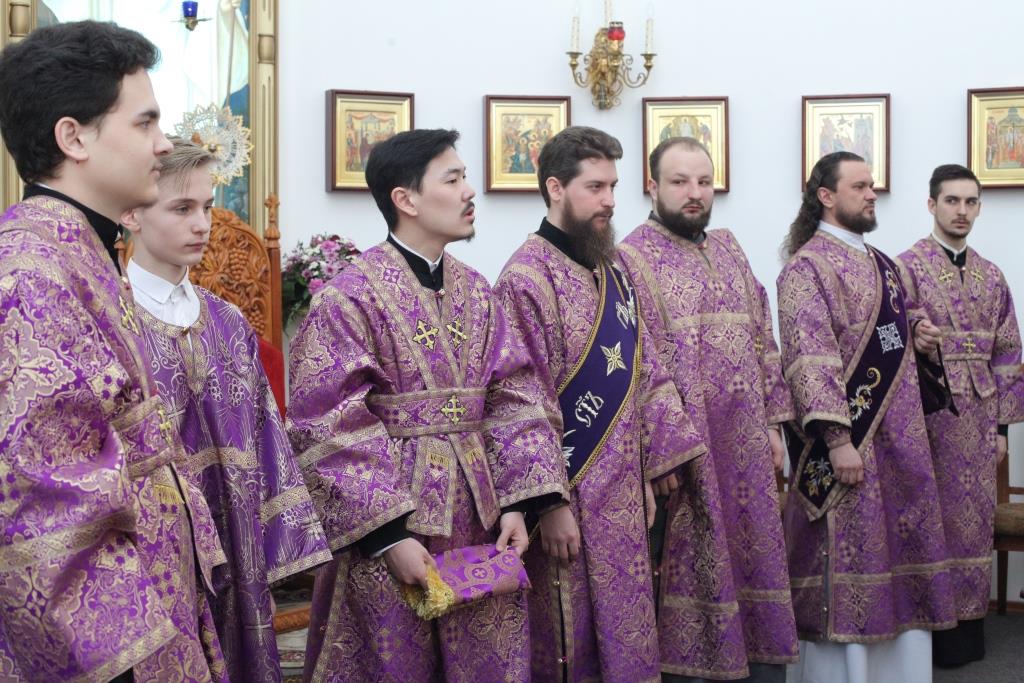 За воскресным богослужением молились: братия Свято-Троицкой мужской обители, сотрудники епархиального управления, преподаватели и воспитанники Центральной воскресной школы, многочисленные прихожане и паломники с окрестных населенных пунктов. По благочестивой традиции множество православных христиан в первое воскресение Великого поста исповедались и приобщились Святых Христовых Таин, среди причастников были все воспитанники Центральной воскресной школы города Усть-Каменогорска.