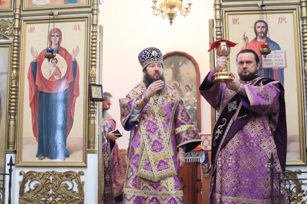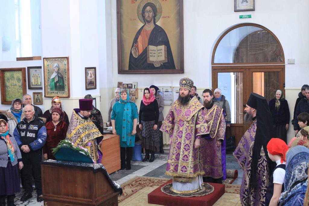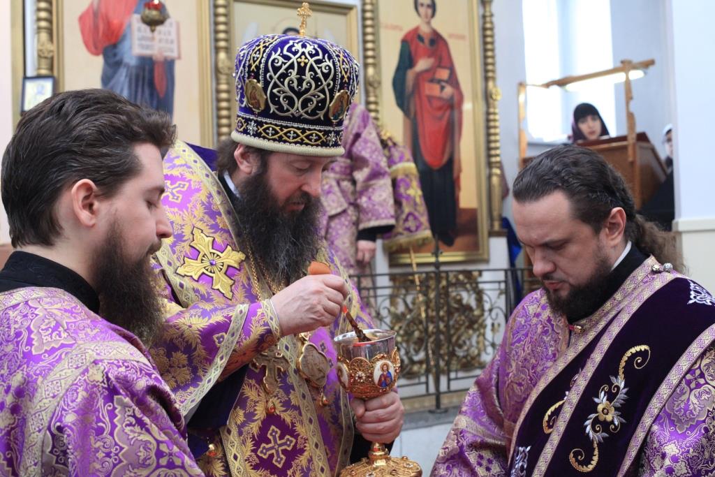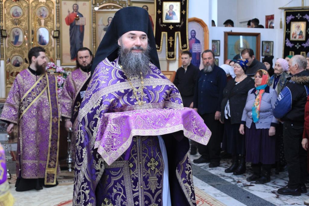 В третье воскресение Святой Четыредесятницы Преосвященнейший епископ Усть-Каменогорский и Семипалатинский Амфилохий возглавил служение Божественной Литургии святителя Василия Великого в храме во имя священномученика Зиновия, пресвитера Согринского.