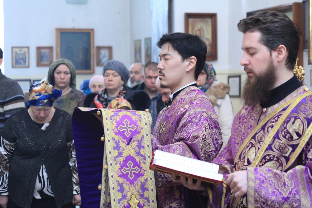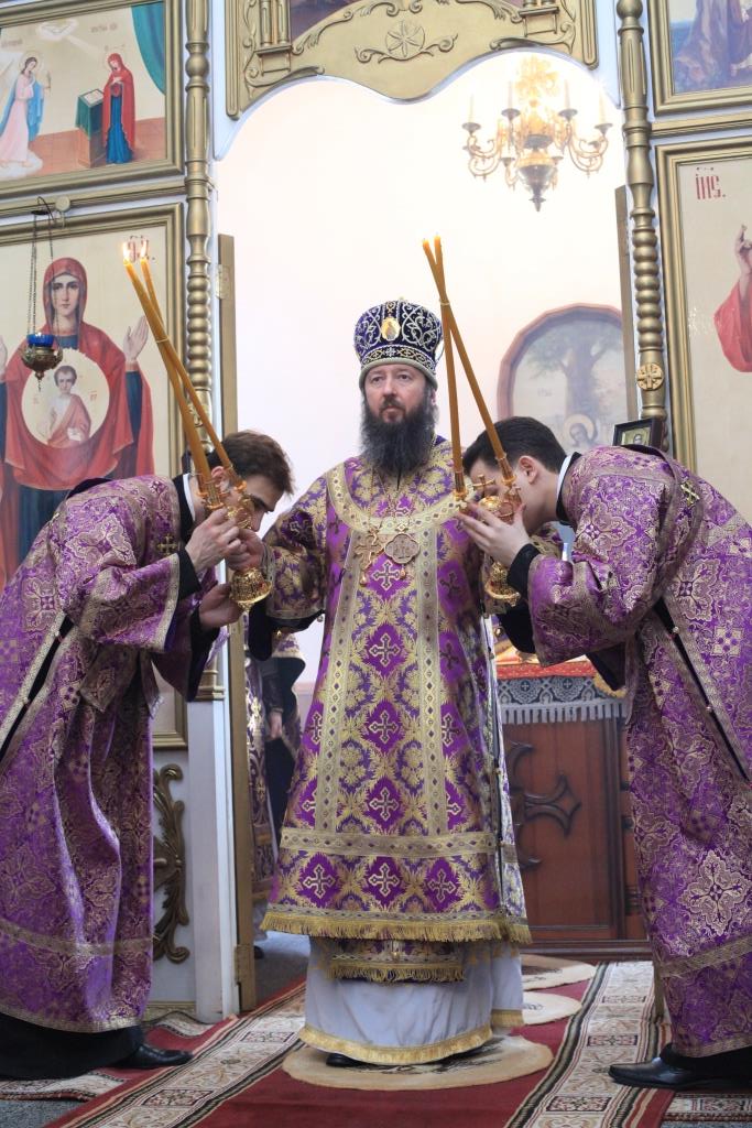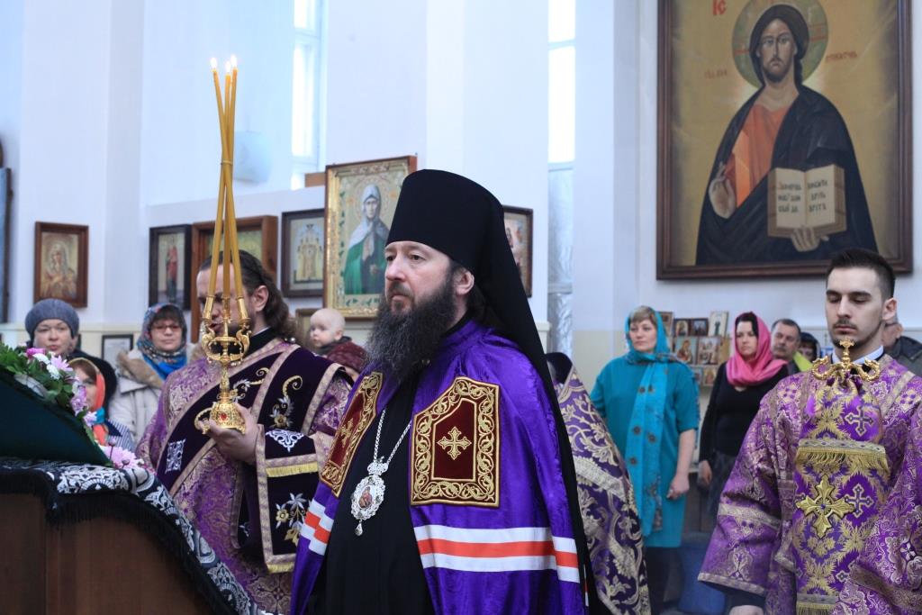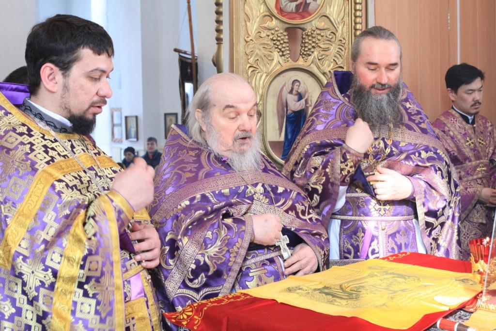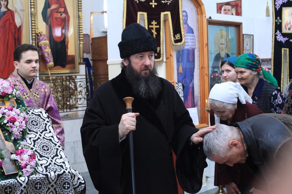 В третье воскресение Святой Четыредесятницы Преосвященнейший епископ Усть-Каменогорский и Семипалатинский Амфилохий возглавил служение Божественной Литургии святителя Василия Великого в храме во имя священномученика Зиновия, пресвитера Согринского.