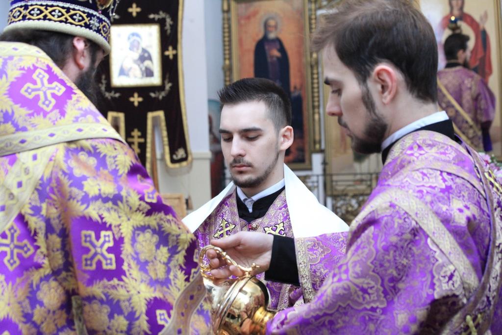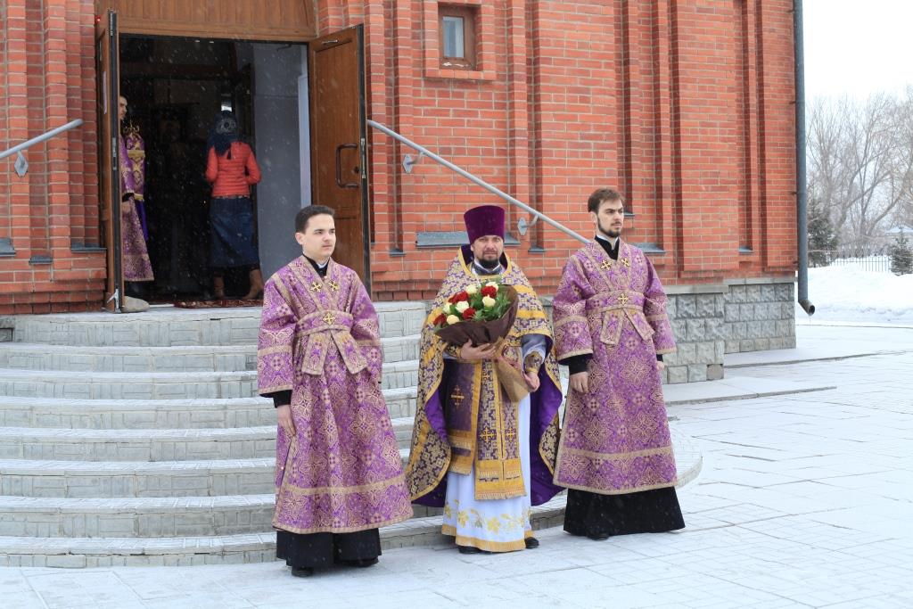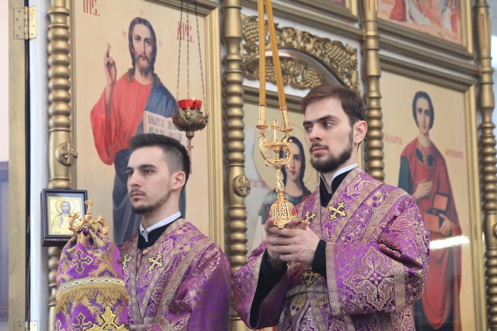 Архипастырю сослужили: духовник епархии архимандрит Спиридон (Теплухин), ключарь Свято-Андреевского кафедрального собора иеромонах Никодим (Авдеев), настоятель храма иерей Вячеслав Гутов, протодиакон Андрей Дудник, иеродиакон Мефодий (Шевчук).