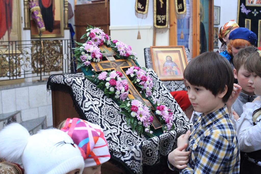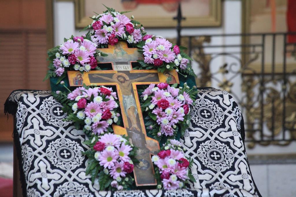 «Сегодня мы чтим Крест Господень, это древо, ставшее орудием нашего спасения, ставшее знаком христианской веры. Какую тайну несет в себе крест? Святой праведный Иоанн Кронштадтский некогда сказал такие слова: «Крест без любви нельзя мыслить и представлять: где Крест, там и любовь. В церкви мы везде и на всем видим кресты для того, чтобы все напоминало нам, что мы в храме Бога любви, в храме Любви, распятой за нас». Это и есть тайна Креста Господня – он стал знаком Божественной любви к людям. Чествуя орудие спасения, мы чествуем и прославляем Божественную любовь, Самого Христа Спасителя, Который стал воплощенной Любовью.