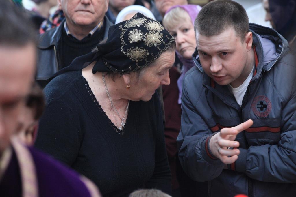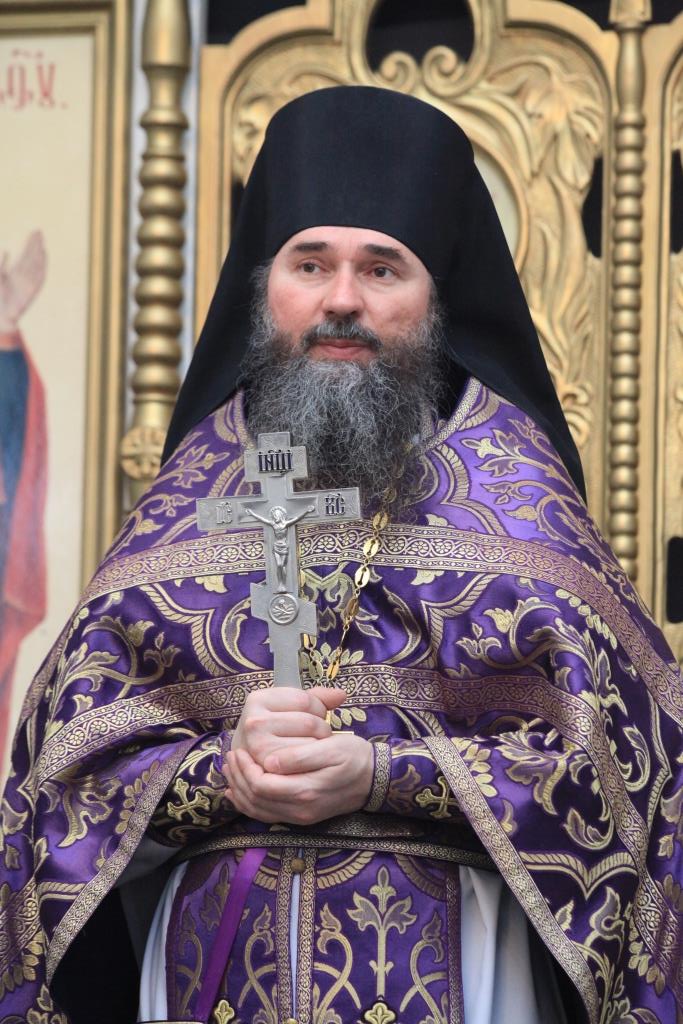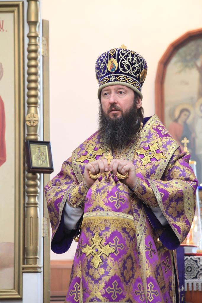 Воскресное богослужение завершилось славлением всечестному Кресту Господню, после которого епископ Амфилохий поздравил прихожан с праздником и обратился ко всем со словами проповеди.