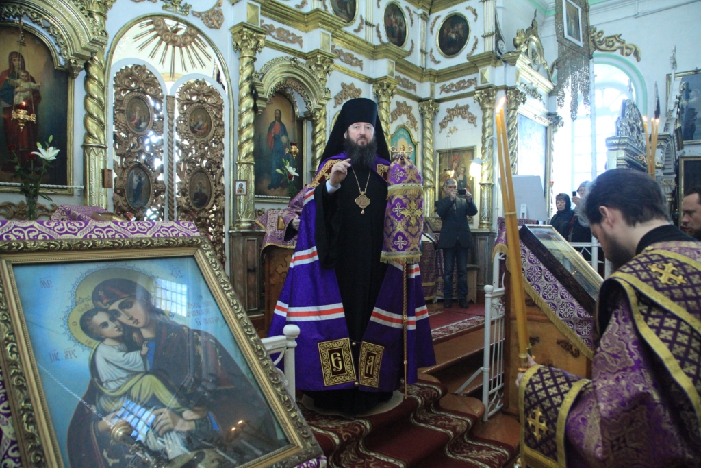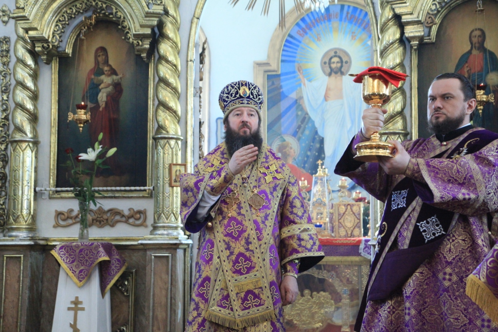 После запричастного стиха проповедовал священник Сергий Жарич. Великопостное Архиерейское Богослужение завершилось проповедью Преосвященного Владыки, в которой епископ Амфилохий отметил: «Жизнь, дарованная нам Всемогущим Богом, каждым человеком воспринимается порой, как необъяснимый и непонятный дар. Между тем благословение человека жизнью, наделение человека, возлюбленного творения Божия, даром разума и различения добра и зла, есть путь ко спасению. И в полной мере это становится ясным для человека, когда в его жизни происходит самая главная встреча, даже не встреча, а таинственное библейское Сретение со Христом. Познавший Христа человек прозревает, с его глаз спадает короста суеты и пустых житейских мечтаний, и он видит, что у него появилась новая цель, новый путь – путь спасения своей души.