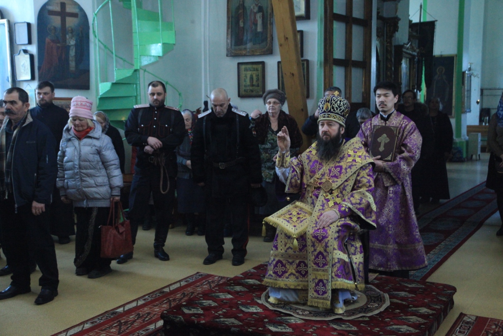 Песнопения великопостного богослужения исполнял хор Воскресенского собора под управлением регента Ю. Хохряковой. За Преждеосвященной Литургией молились многочисленные прихожане и паломники второго кафедрального собора епархии, преподаватели и воспитанники воскресной школы, семипалатинское казачество.