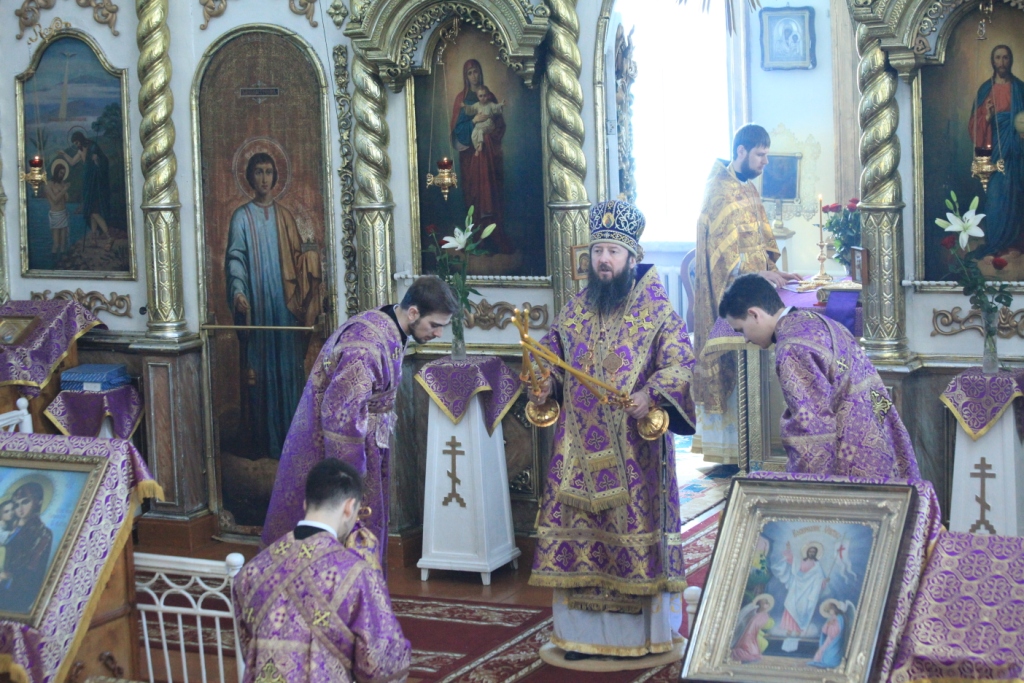 Управляющий Усть-Каменогорской и Семипалатинской епархией Преосвященнейший епископ Амфилохий посетил с Архипастырским визитом второй кафедральный центр епархии – город Семипалатинск. В пятницу третьей седмицы Святой Четыредесятницы в Спасо-Воскресенском соборе Семипалатинска Преосвященнейший Владыка возглавил служение Божественной Литургии Преждеосвященных Даров. Епископу Амфилохию сослужили: благочинный Семипалатинского церковного округа митрофорный протоиерей Феодор Проскурин, ключарь собора иерей Евгений Потылицын, клирики Воскресенского собора протоиерей Михаил Безродний и иерей Сергий Жарич, руководитель молодежного отдела епархии иерей Вячеслав Гутов; протодиакон Андрей Дудник, диакон Николай Белоконь, иеродиакон Мефодий (Шевчук).