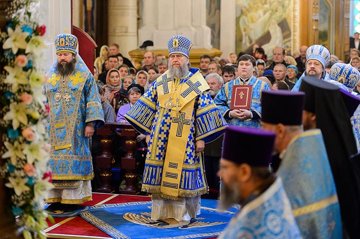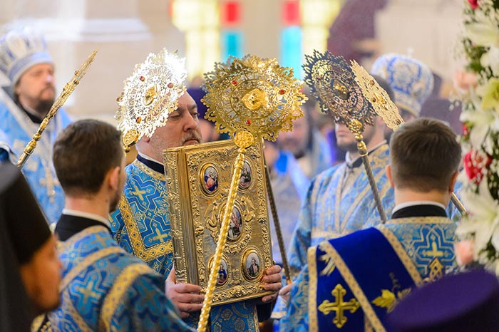 «Каждое церковное торжество, посвященное Пречистой Владычице, открывает перед нами Ее духовное величие, чистоту и святость. Ей, единственной из всего рода человеческого, Бог определил быть Матерью Господа, посредством Которой вочеловечился Сын Божий Господь наш Иисус Христос – и, как возвещает апостол, «Слово стало плотию, и обитало с нами, полное благодати и истины» (Ин. 1, 14). Приснодева Мария явилась лестницей, соединившей небо и землю; Она была, по речению святителя Игнатия (Брянчанинова), «тем единственным сосудом, в который Бог вселился самим существом Своим».