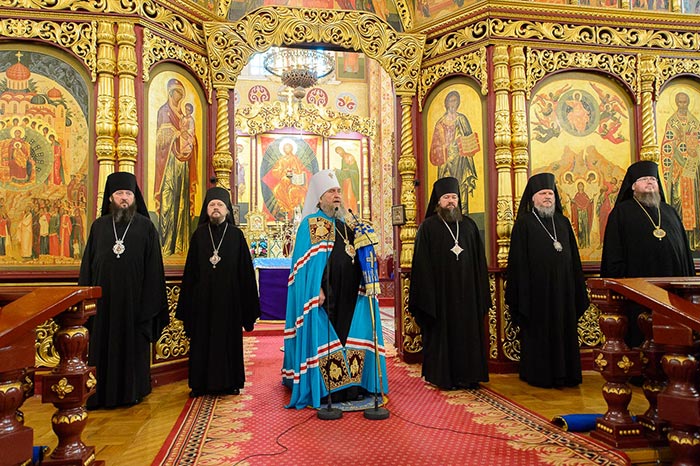 Было провозглашено многолетие Предстоятелю Русской Православной Церкви Святейшему Патриарху Московскому и всея Руси Кириллу; Главе Казахстанского Митрополичьего округа, архипастырям, прибывшим на празднование; Президенту, властям, воинству и всему народу Казахстана.