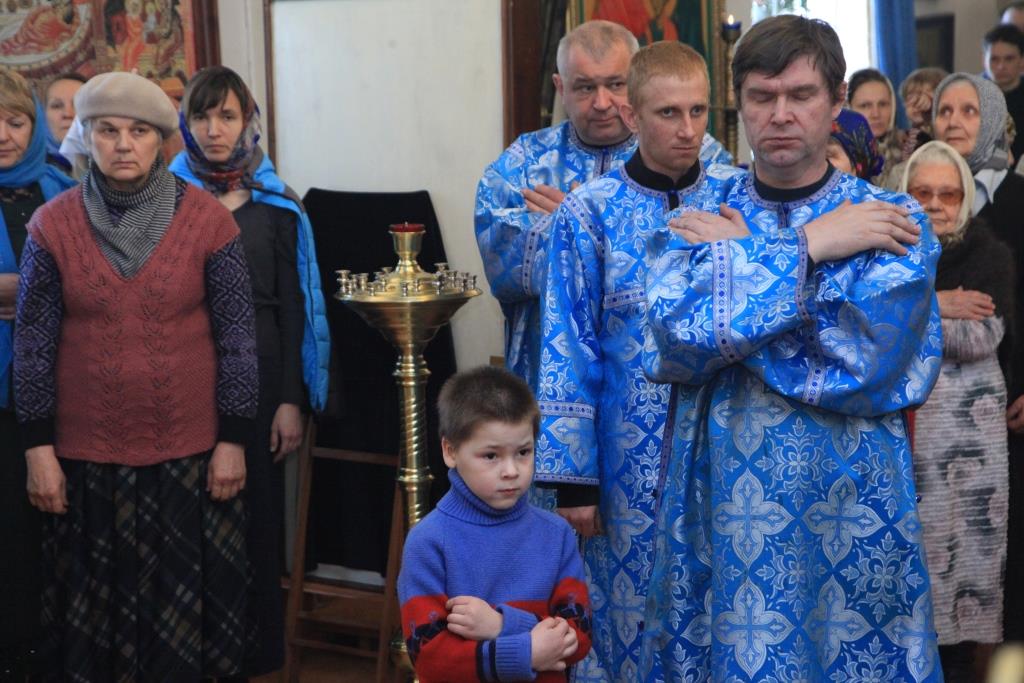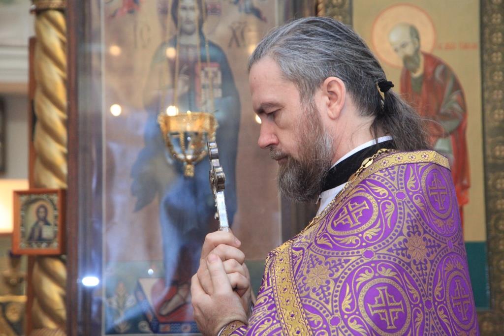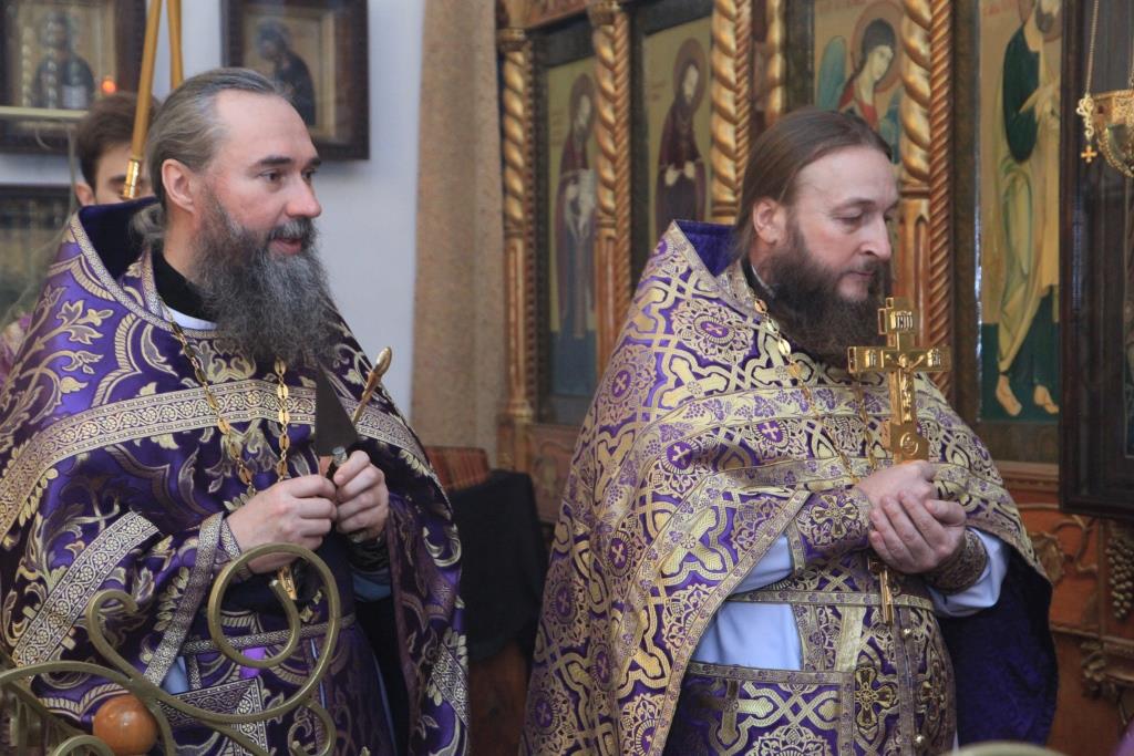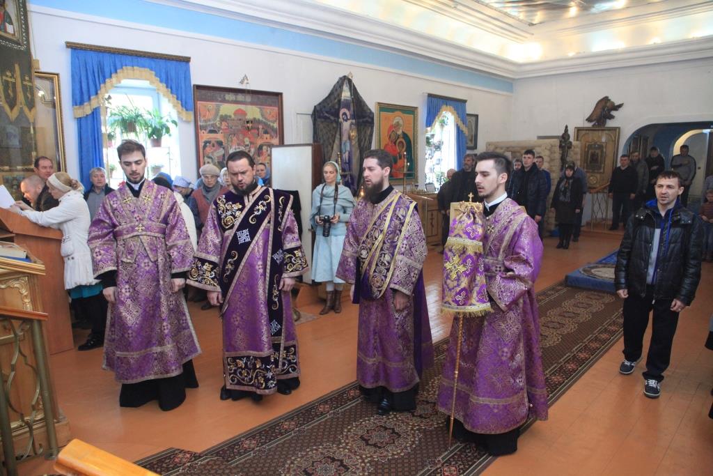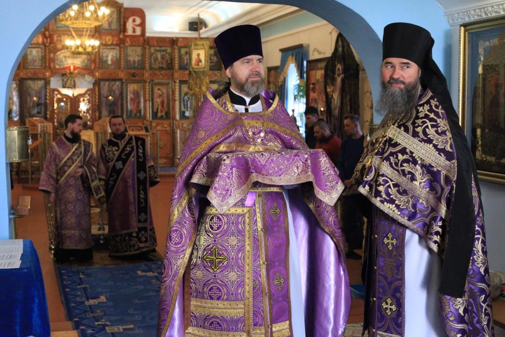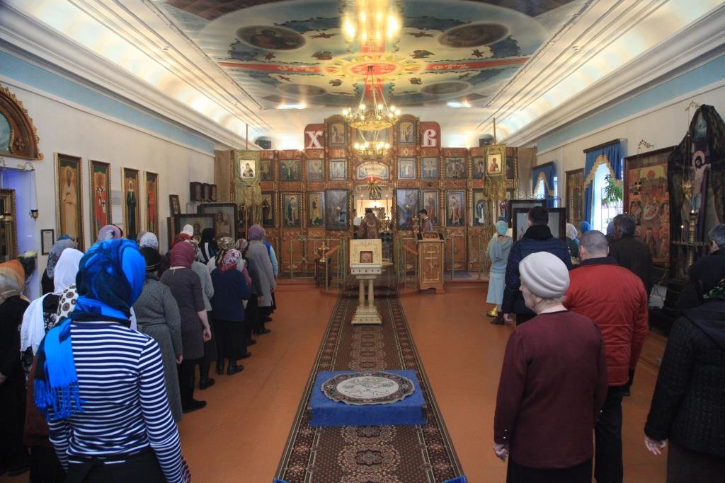 За Архипастырским богослужением молились прихожане и паломники Богородице-Рождественского храма, преподаватели и воспитанники приходской воскресной школы. Песнопения Божественной Литургии исполнял хор под управлением регента В. Федоровой. Перед причастием мирян проповедовал протоиерей Евгений Яганов.