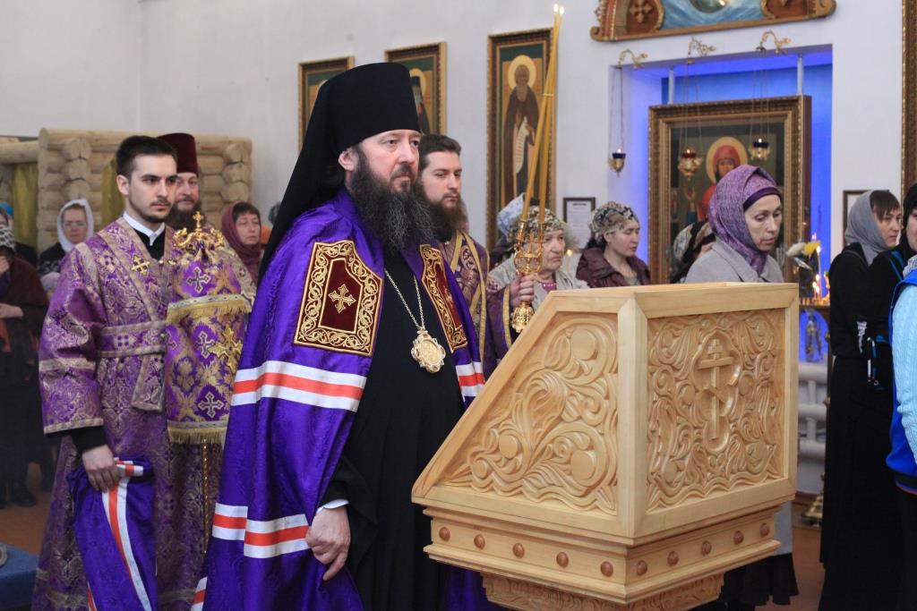 После заамвонной молитвы было совершено славление преподобной Марии Египетской. По окончании воскресного Богослужения Архипастырь обратился к прихожанам со словами наставления.