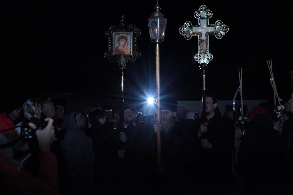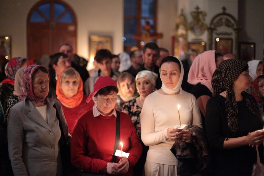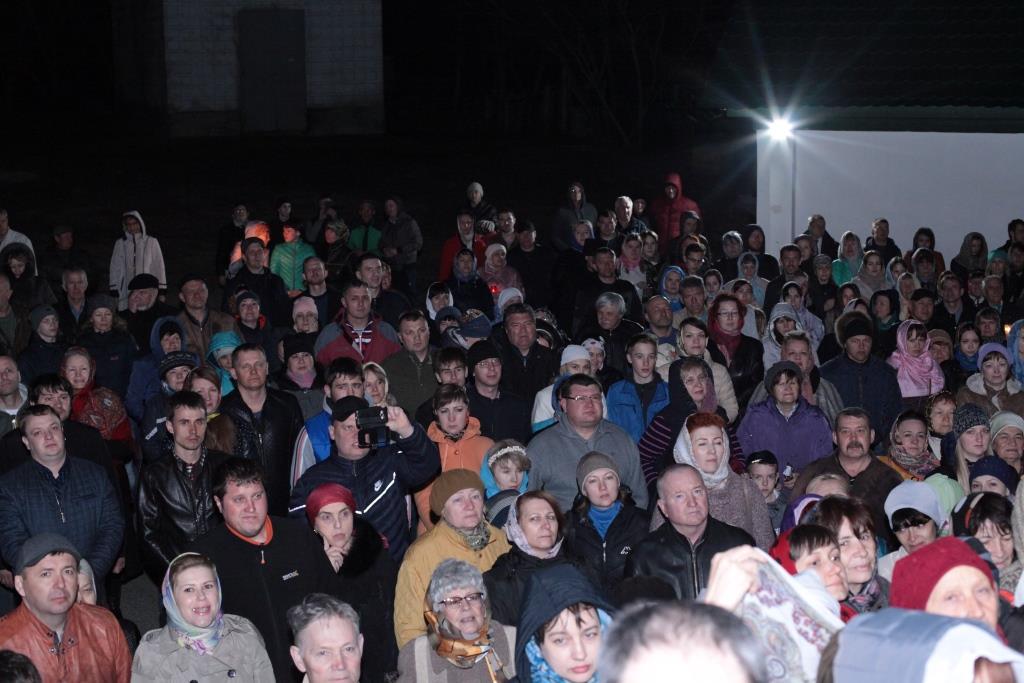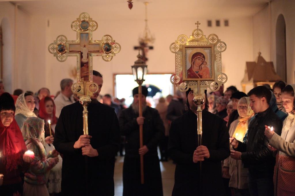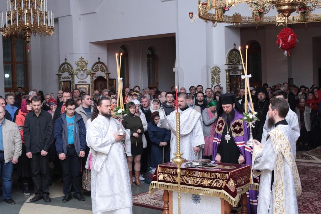 Ровно в полночь, под колокольный звон и пение стихиры «Воскресение Твое, Христе Спасе», был совершен крестный ход. Богослужение продолжилась пением пасхального канона, на каждой песне которого клирики кафедрального собора совершали малое каждение и поздравляли многочисленных прихожан и паломников со Светлым Христовым Воскресением. Пасхальные песнопения исполняли хор кафедрального собора под управлением В. Федоровой и мужской хор под управлением А. Шагидевича.