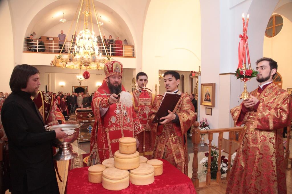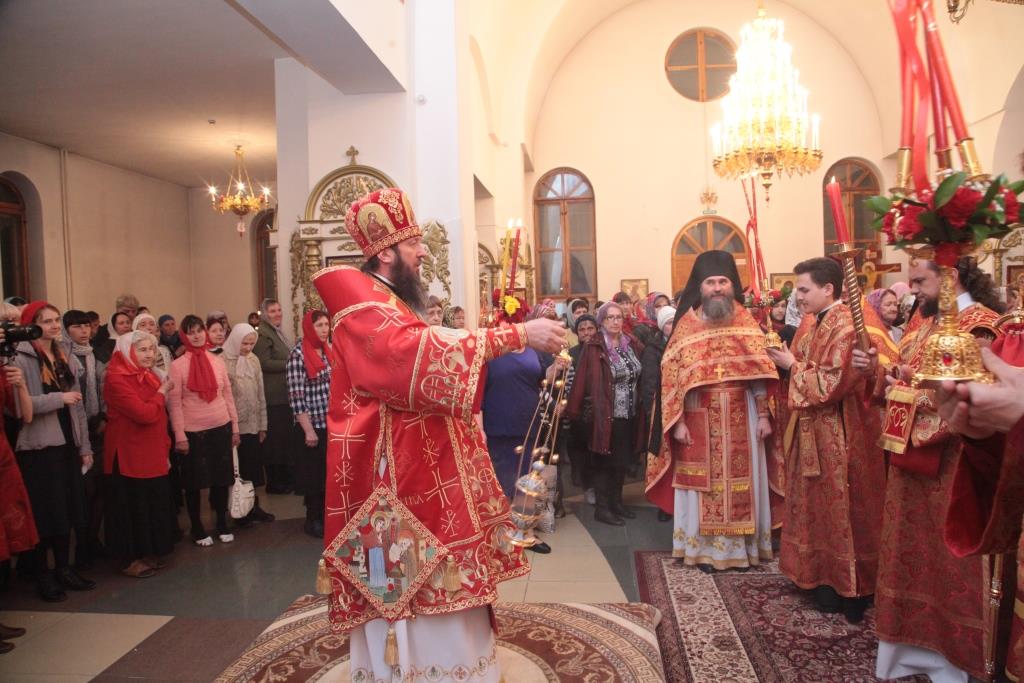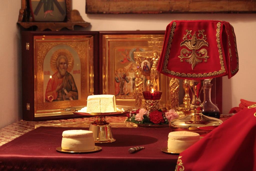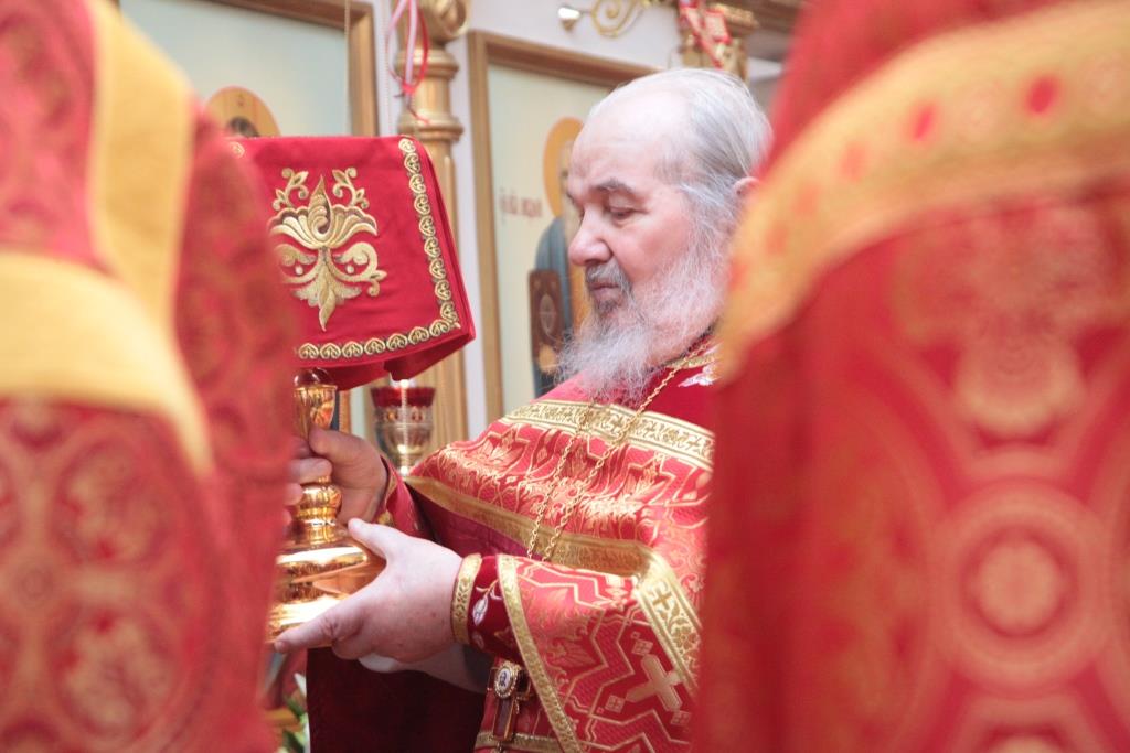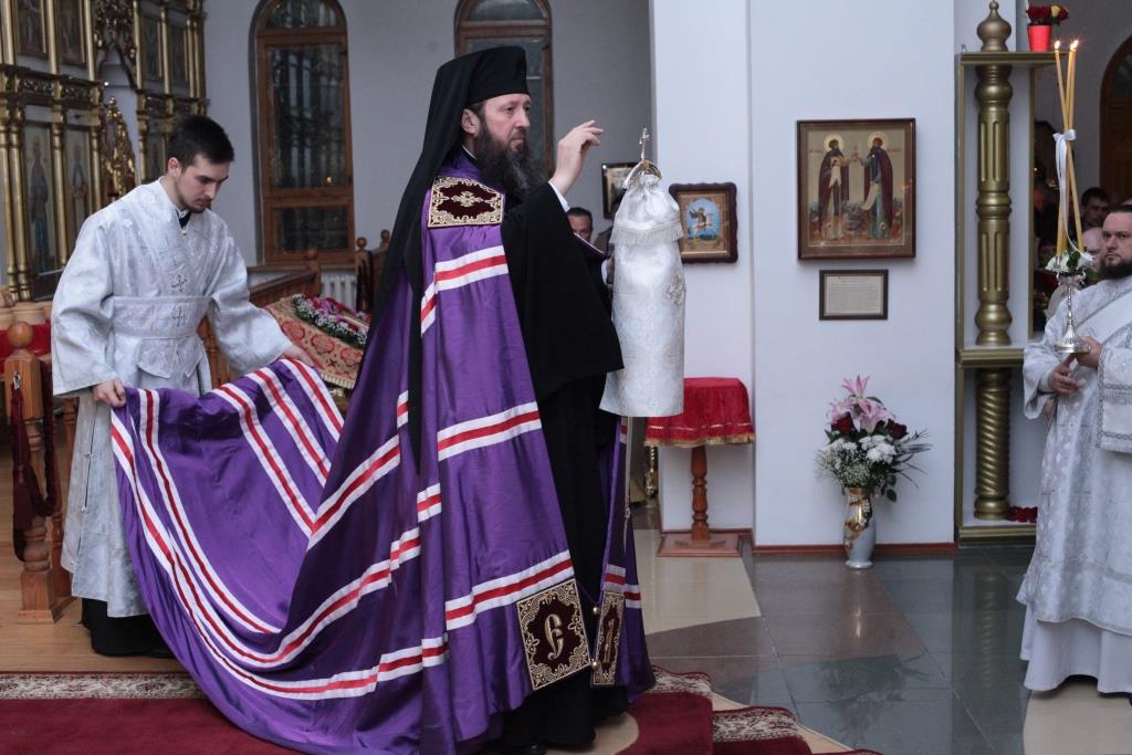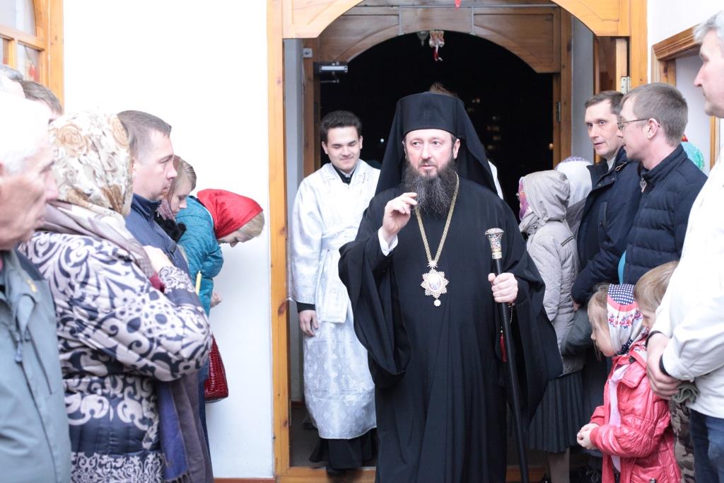 После заамвонной молитвы епископ Амфилохий освятил артосы, и обратился к народу Божию со словами пасхального приветствия, в котором поздравил всех с великим торжеством и мироспасительным праздником Воскресения Господа Бога и Спаса нашего Иисуса Христа. В завершение Богослужения Преосвященнейший Владыка освятил пасхальную трапезу: крашеные яйца, творожные пасхи и куличи.