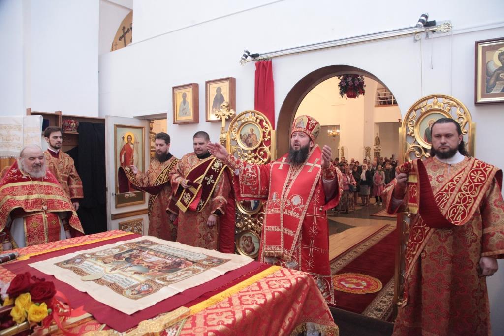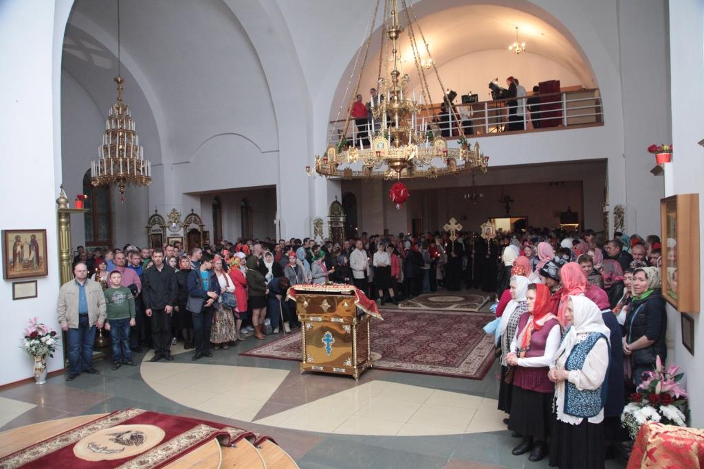 Пасхальные Богослужения предварились чтением книги Деяний святых апостолов, общей исповедью для желающих причаститься Святых Христовых Таин за Божественной Литургией, и совершением пред Плащаницей Господа Иисуса Христа полунощницы с каноном Великой Субботы «Волною морскою», в котором повествуется о погребении Распятого на Кресте за грехи мира Сына Божия. На девятой песне канона Святая Плащаница была внесена в алтарь и положена на Престол, где она будет пребывать до праздника Вознесения – в память о сорокадневном пребывании на земле Воскресшего Господа.