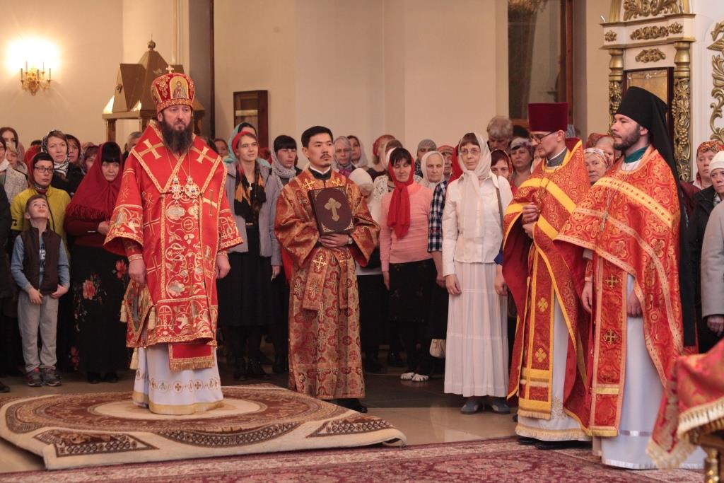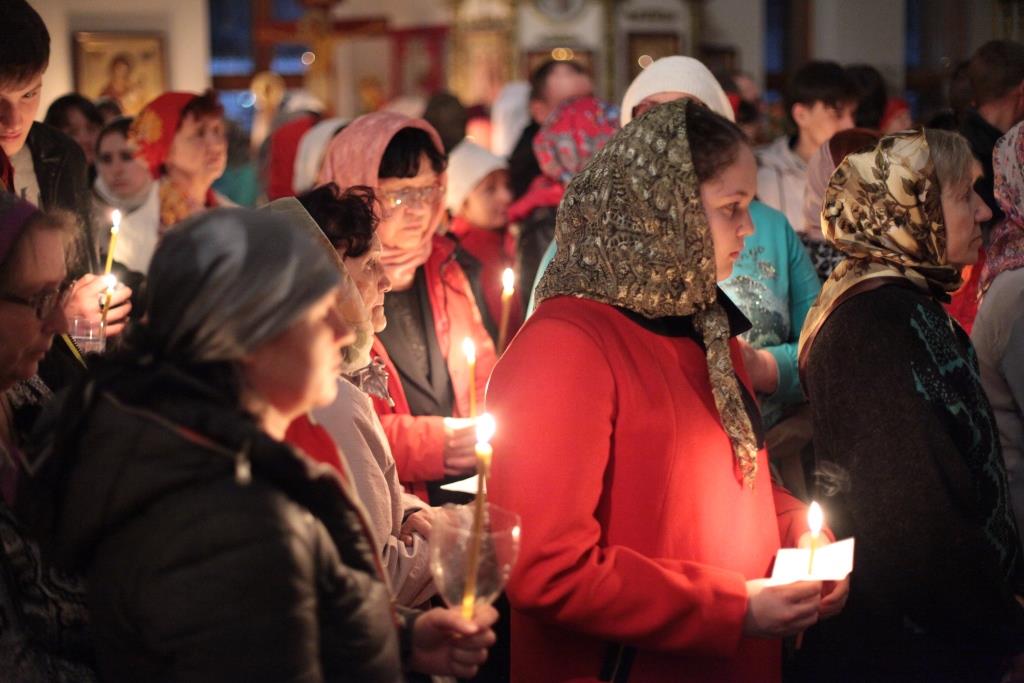 После пения канона и стихир Пасхи прихожане услышали «Слово огласительное святителя Иоанна Златоуста», замечательное творение Отца Церкви, в котором все христиане призываются в святую пасхальную ночь насладиться светлым торжеством и войти в радость тридневно Воскресшего Господа.
