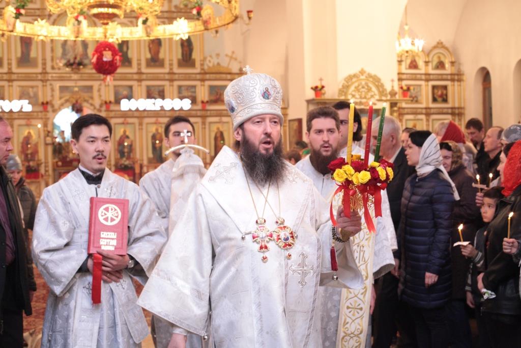 В святую Пасхальную ночь Управляющий Усть-Каменогорской и Семипалатинской епархией Преосвященнейший епископ Амфилохий возглавил служение Пасхальной утрени и Божественной Литургии святителя Иоанна Златоуста в кафедральном соборе во имя святого апостола Андрея Первозванного. Архипастырю сослужили: духовник епархии архимандрит Спиридон (Теплухин), ключарь кафедрального собора иеромонах Никодим (Авдеев), клирики собора иеромонах Севастиан (Андрющенко) и иерей Константин Дьяков, иеромонах Евгений (Щеглов), протодиаконы Георгий Засыпкин и Андрей Дудник, иеродиакон Мефодий (Шевчук).