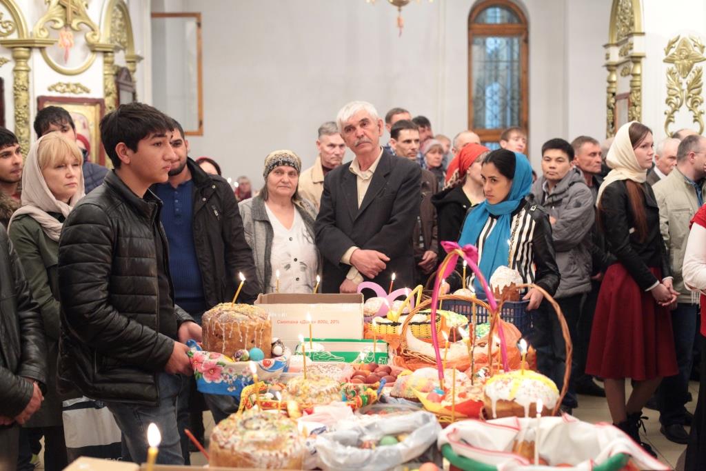 За Богослужением Пасхи молились насельники Свято-Троицкой обители, сотрудники епархиального управления, преподаватели и воспитанники Центральной воскресной школы, многочисленные прихожане и паломники главного храма Восточного Казахстана.