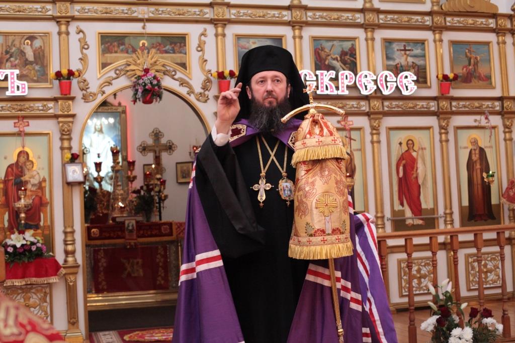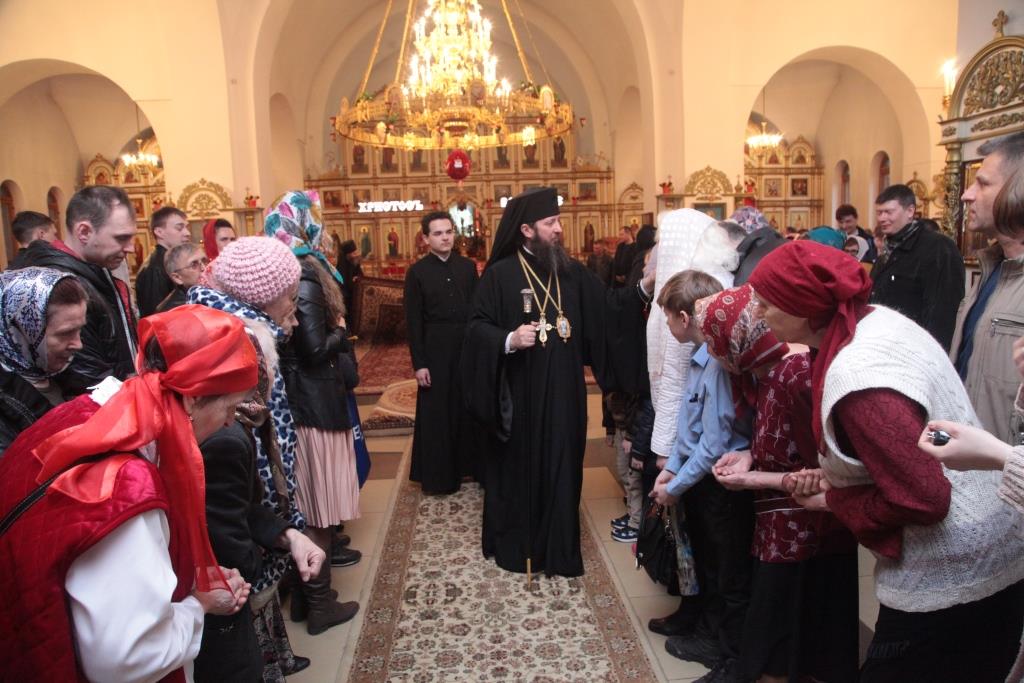 После чтения Пасхального послания Преосвященнейший Владыка обратился к духовенству и прихожанам с Архипастырским словом.