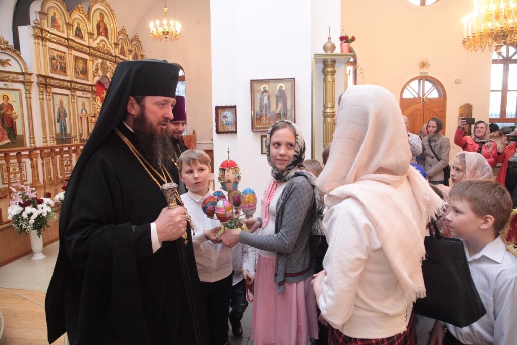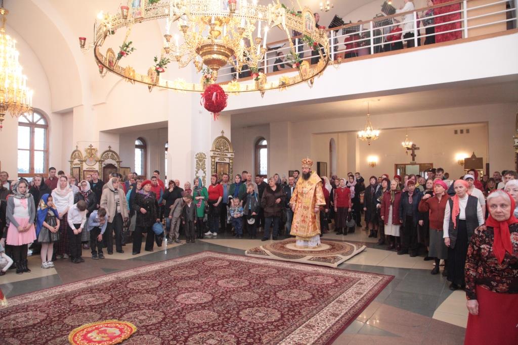 Утром воскресного дня в кафедральном соборе был совершен пасхальный молебен, собравший большое количество молящихся. В течение дня клирики главного храма епархии освящали куличи, творожные пасхи и прочую пасхальную снедь для всех желающих.
