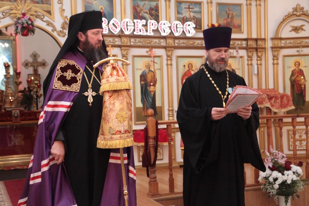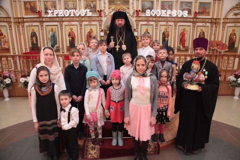 По окончании вечерни благочинный Усть-Каменогорского церковного округа иерей Алексий Анищенко огласил Пасхальное послание епископа Усть-Каменогорского и Семипалатинского Амфилохия, в котором Архипастырь отметил: «В книге Откровения Иоанна Богослова мы находим такие слова: «Я есмь Первый и Последний, и живый; и был мертв, и се, жив во веки веков, аминь» (Откр. 1:17-18). Жив во веки веков наш Господь! И всякий, верующий в Него, имеет жизнь вечную (ср. Ин. 3:36). «Придет время, что тленное сие облечется в неветшающее и неистлевающее. Вечно жив Тот, Кто сотворил и воздвиг сие тленное из ничего. По Его животворящему гласу воскреснет оно из гроба для Царства, – восторженно пишет преподобный Ефрем Сирин. Реальность грядущего всеобщего воскресения из мёртвых, которое откроет нам двери совершенно иного бытия – Царства Христова, побуждает всех нас в эти святые дни прислушаться к голосу Евангелия и Святых Отцов.