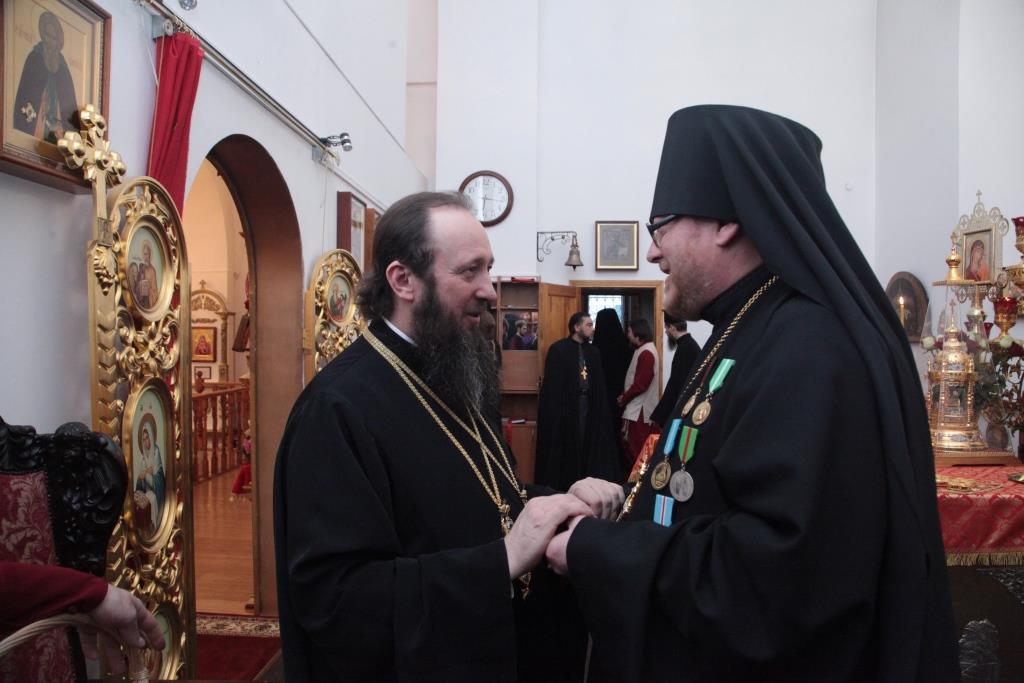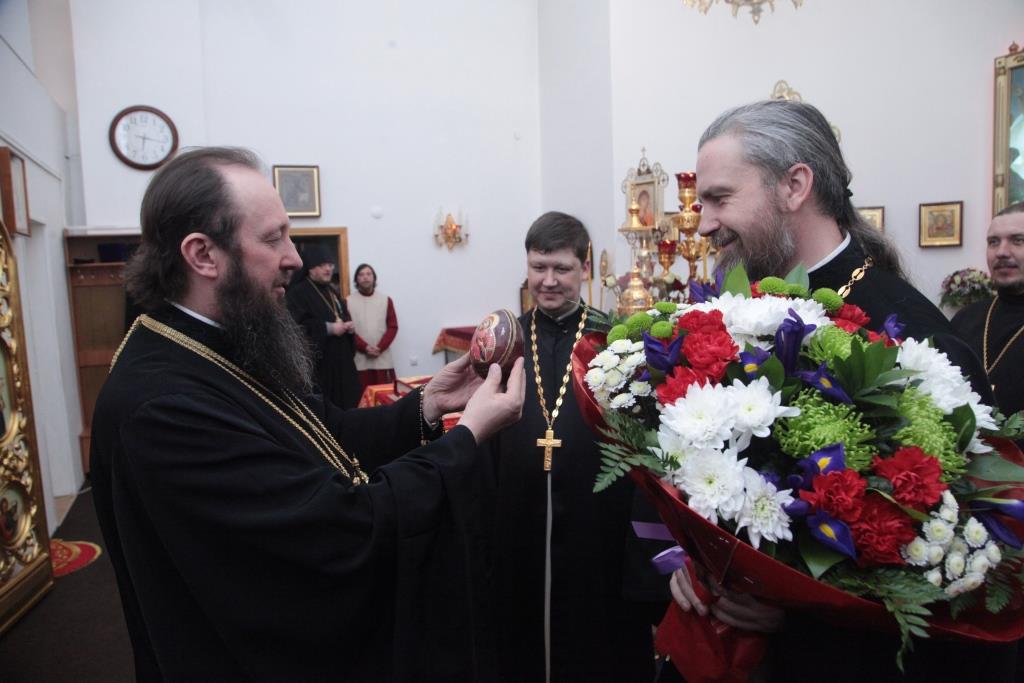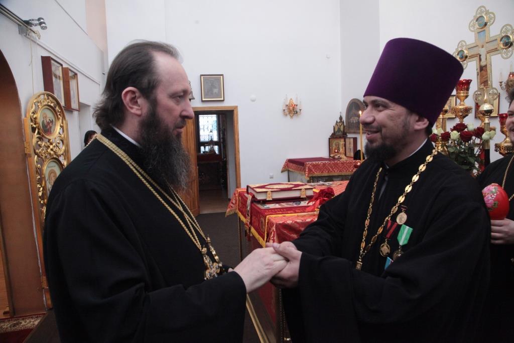 В конце вечерни Преосвященнейший Владыка принял традиционные пасхальные поздравления от городского духовенства и пришедших на Богослужение верующих Усть-Каменогорска.