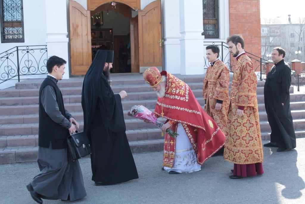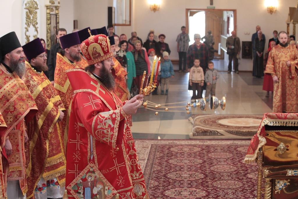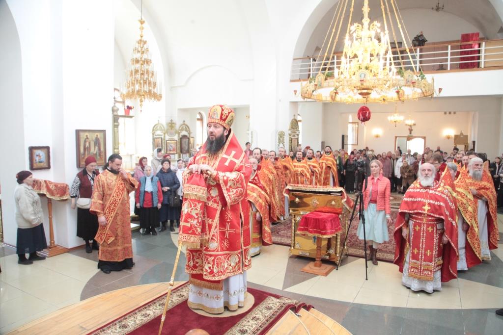 В четверг Светлой седмицы Преосвященнейший епископ Усть-Каменогорский и Семипалатинский Амфилохий возглавил служение Божественной Литургии пасхальным чином в Андреевском кафедральном соборе города Усть-Каменогорска. Архипастырю сослужили: духовник епархии архимандрит Спиридон (Теплухин), благочинный Семипалатинского церковного округа митрофорный протоиерей Феодор Проскурин, благочинный Усть-Каменогорского церковного округа иерей Алексий Анищенко, настоятели и клирики приходов Усть-Каменогорской и Семипалатинской епархии.