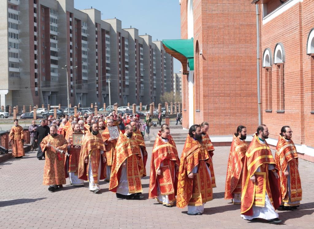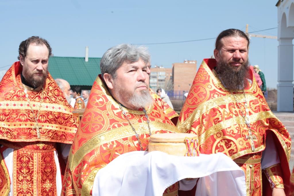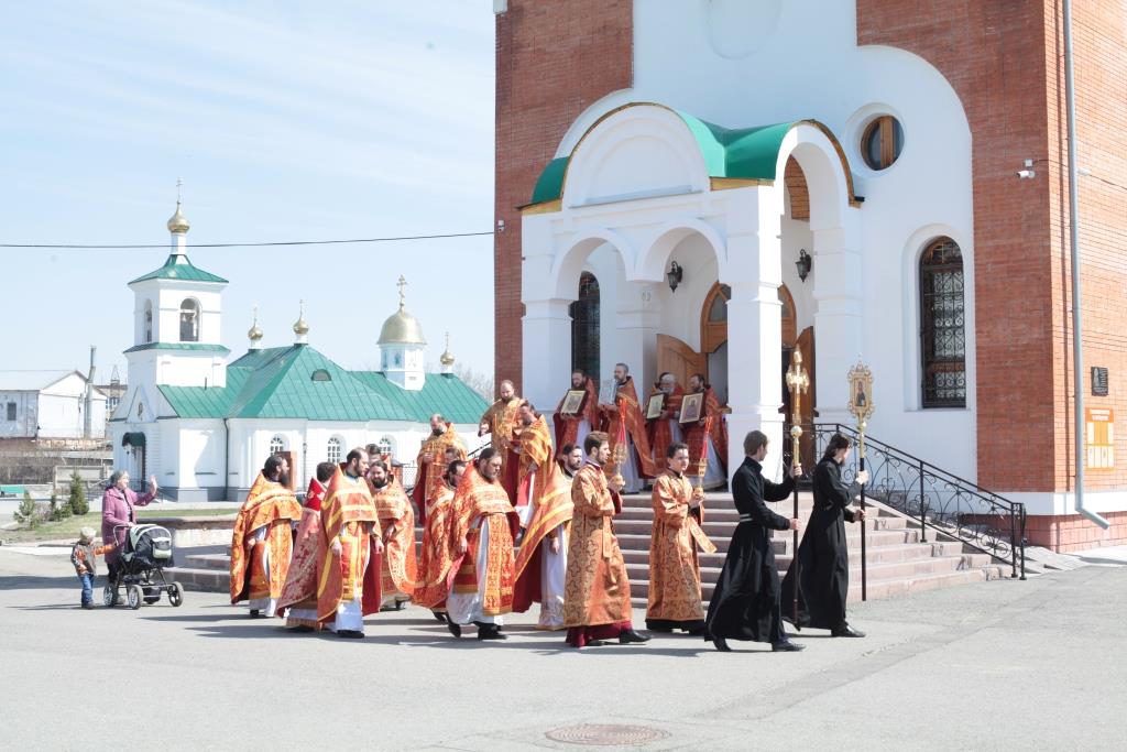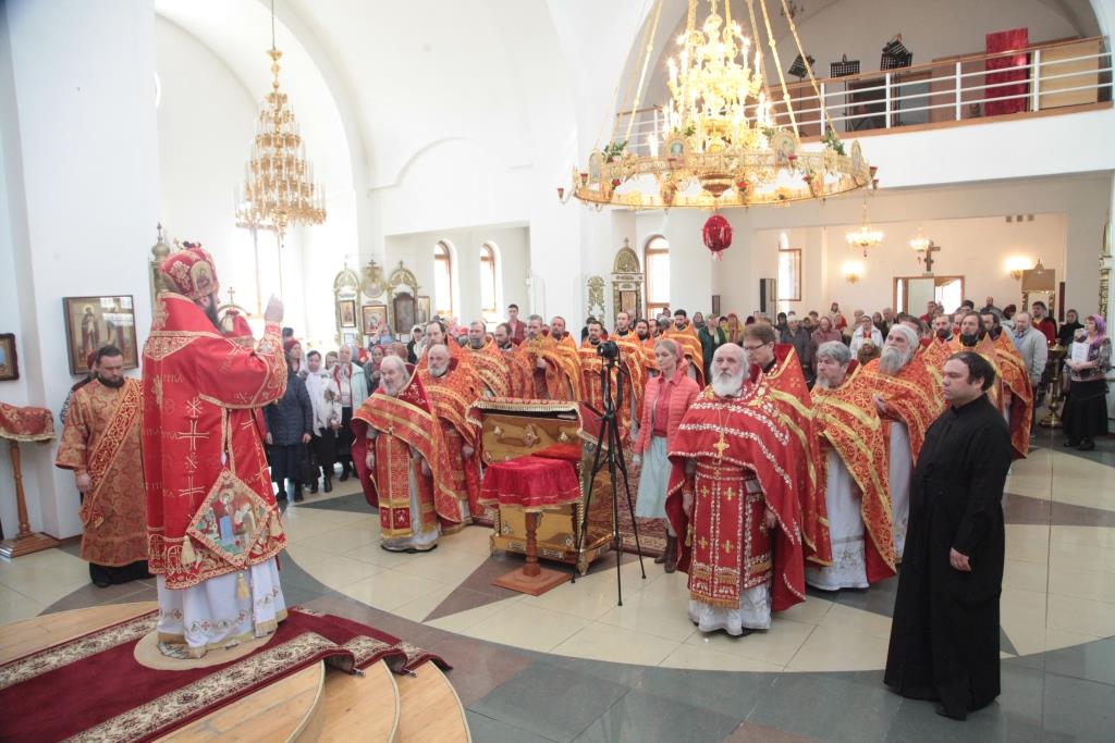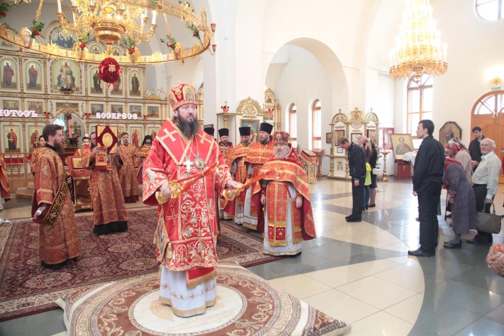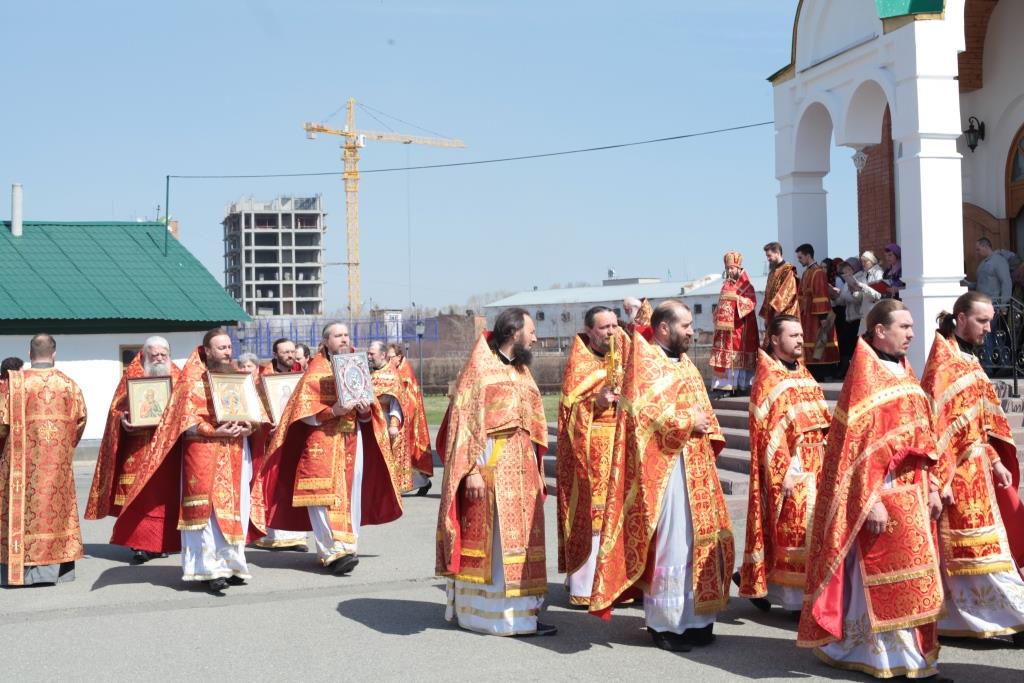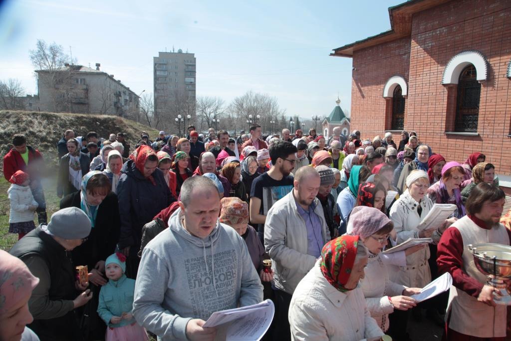 Перед причастием мирян проповедовал благочинный Усть-Каменогорского церковного округа иерей Алексий Анищенко. После заамвонной молитвы был совершен пасхальный крестный ход, после которого Архипастырь с клириками воспел славление священномученику Александру (Дагаеву).