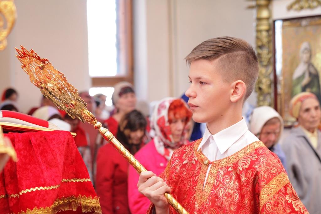 На воскресном богослужении молились прихожане и паломники главного храма епархии, насельники Свято-Троицкого мужского монастыря, сотрудники епархиального управления. Песнопения Божественной Литургии исполнял хор собора под управлением регента Андрея Мельникова и мужской хор под управлением Андрея Шагидевича. Перед причастием мирян проповедовал ключарь кафедрального собора.
