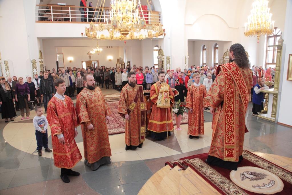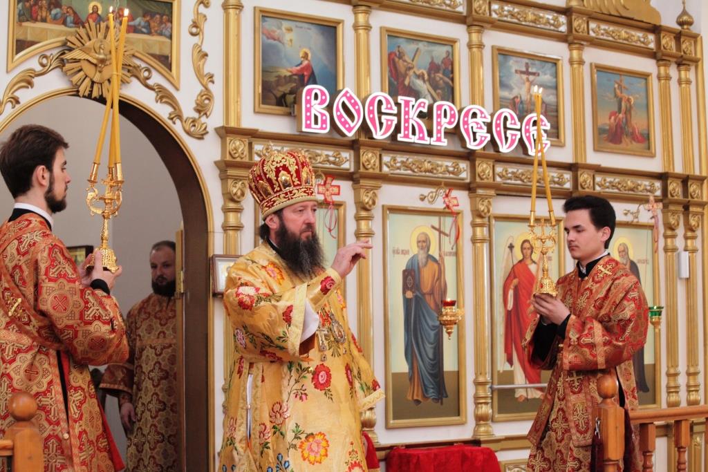 После проповеди епископ Амфилохий поздравил прихожанок кафедрального собора с праздником жен-мироносиц, пожелав им мира, спасения души, и твердой веры в Господа Иисуса Христа.
