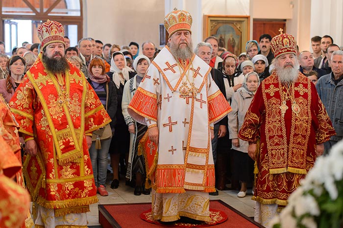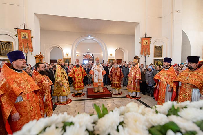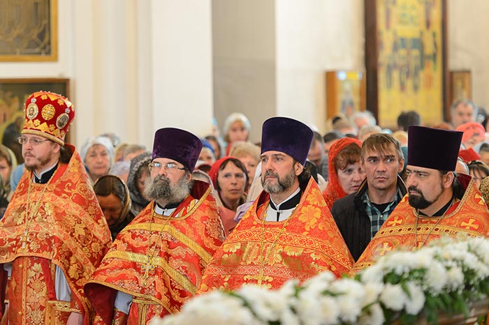 Главе Казахстанского Митрополичьего округа сослужили: епископ Талдыкорганский Нектарий, епископ Павлодарский и Экибастузский Варнава, епископ Усть-Каменогорский и Семипалатинский Амфилохий, епископ Кокшетауский и Акмолинский Серапион; настоятель храма в честь иконы Божией Матери «Всех скорбящих радость» города Алма-Аты протоиерей Евгений Воробьев, референт Алма-Атинского епархиального управления архимандрит Феодосий (Иванов), настоятель Свято-Серафимовского храма города Экибастуза протоиерей Игорь Попов, ключарь Христорождественского храма Павлодара протоиерей Константин Кутасевич, руководитель информационного отдела Митрополичьего округа протоиерей Евгений Иванов, секретарь Павлодарского епархиального управления протоиерей Алексей Степанов, клирик Астанайского благочиния иеромонах Силуан (Синегубов), протодиакон Николай Гринкевич, протодиакон Владимир Сыровацкий, диакон Димитрий Савченко, диакон Александр Мокий; клирики Павлодарской епархии.