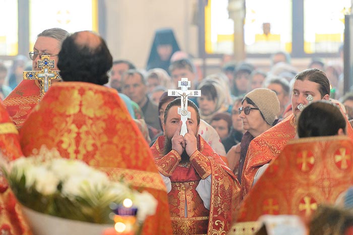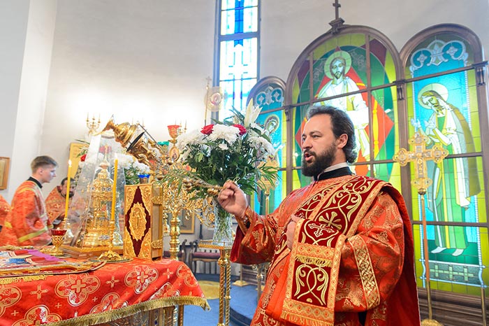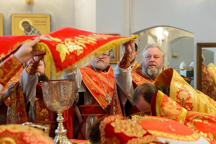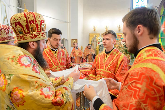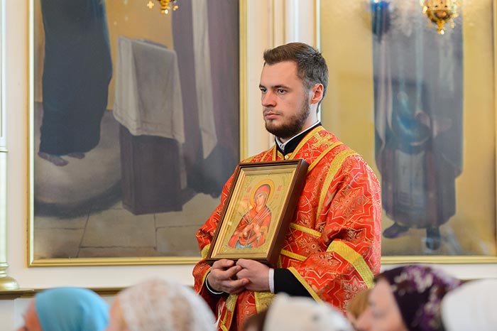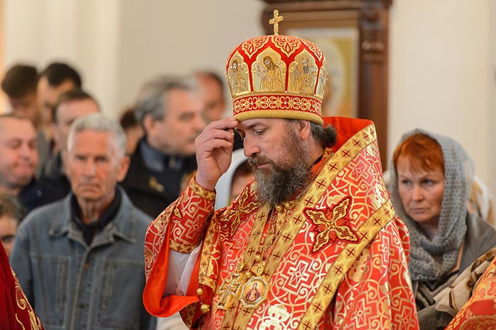 По запричастном стихе архимандрит Феодосий (Иванов) огласил Обращение митрополита Астанайского и Казахстанского Александра по случаю принесения в Казахстан чудотворной иконы Богородицы «Умягчение злых сердец»