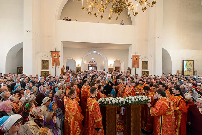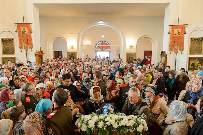 За богослужением молились: настоятельница Петропавловского Павлодарского женского монастыря игумения Агния (Иванова) с сестрами обители, ктиторы собора, представители казачества, многочисленные паломники из городов и сел Павлодарской области.