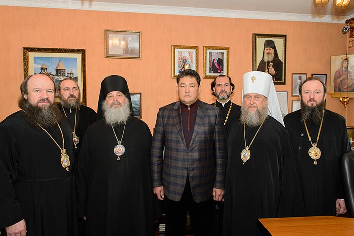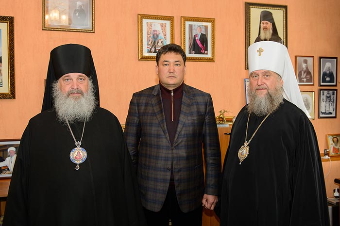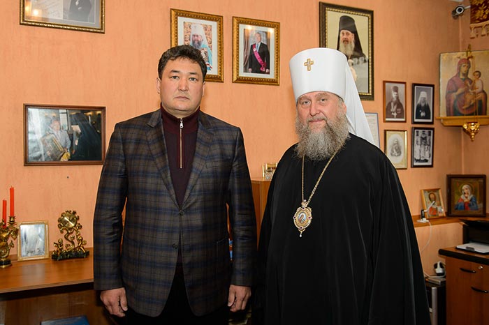 После окончания Литургии состоялась встреча митрополита Астанайского и Казахстанского Александра с акимом Павлодарской области Бакауовым Булатом Жумабековичем, в которой приняли участие архипастыри и руководитель департамента по делам религий Павлодарской области Д.К. Закарьянов.