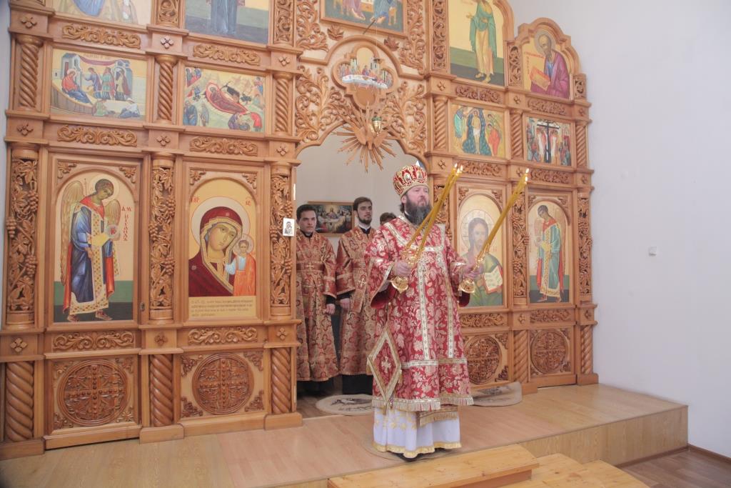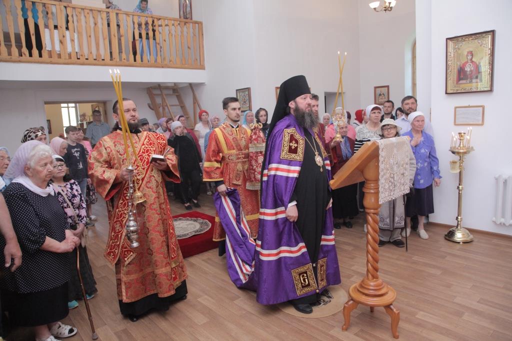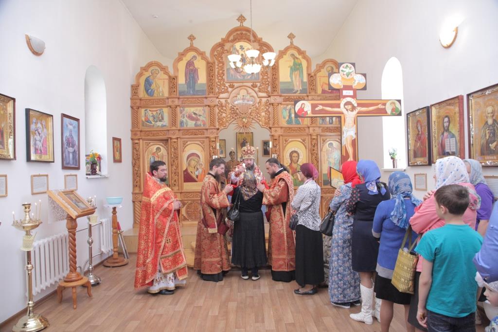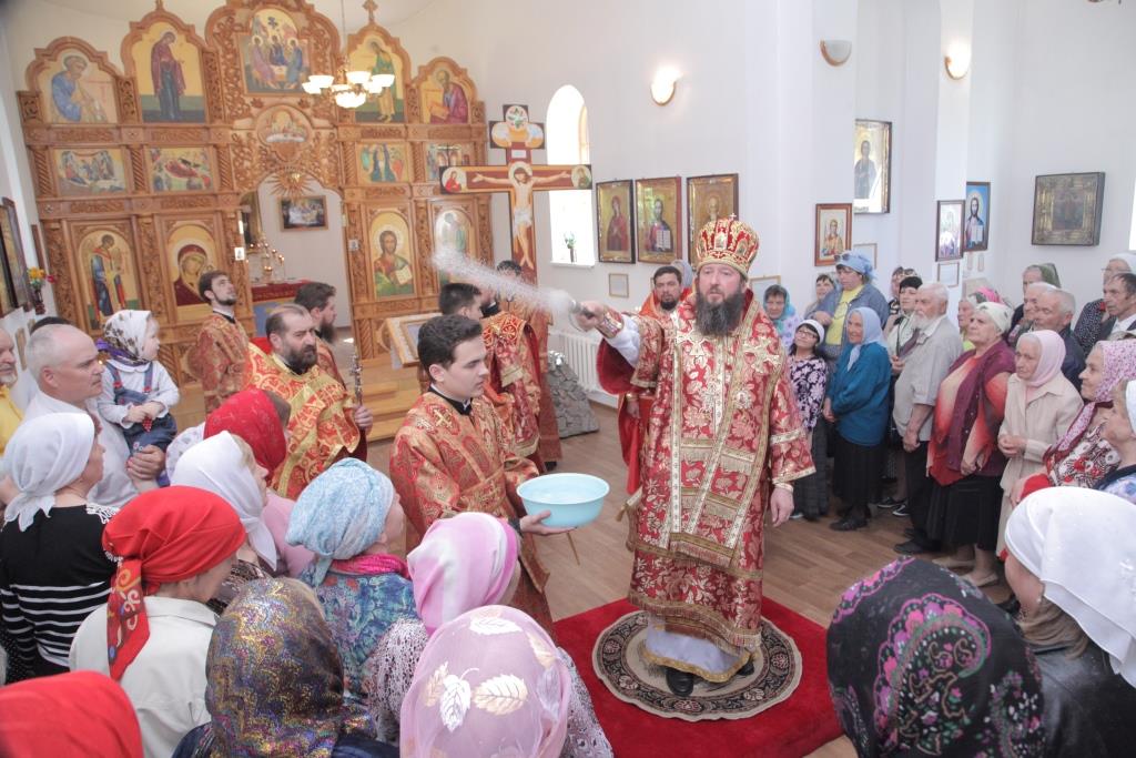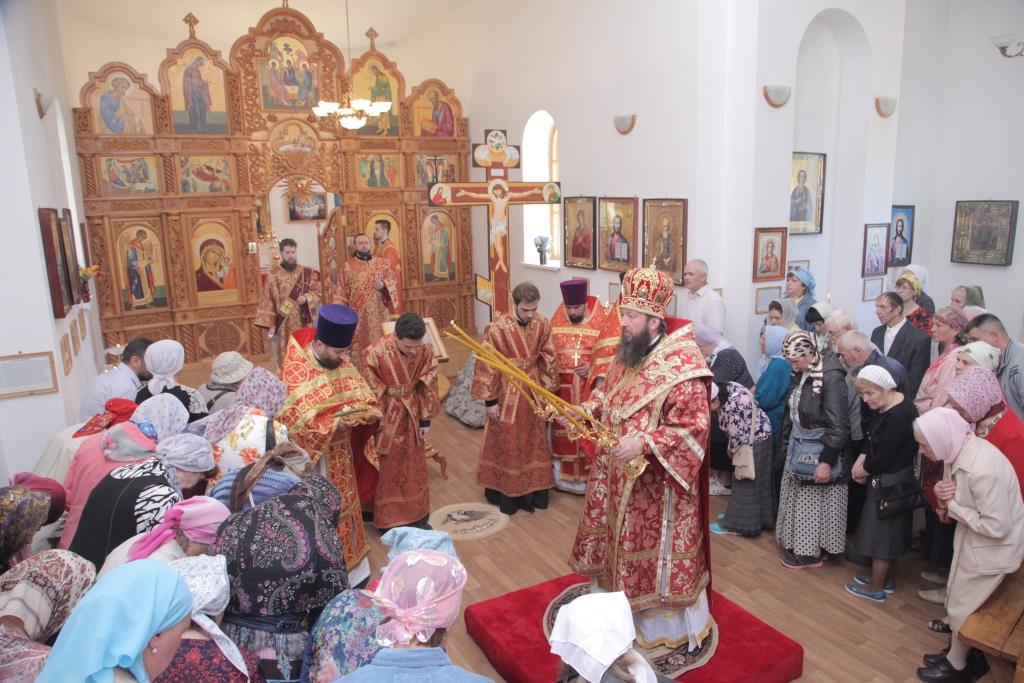 Божественная Литургия завершилась славлением Пресвятой Богородице. После Богослужения Преосвященнейший Владыка поздравил прихожан с престольным праздником и обратился к ним со словами Архипастырского наставления.