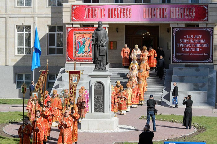 В Успенском кафедральном соборе Астаны состоялась Божественная Литургия пасхальным чином, освятившая празднование в Казахстанской столице 145-летия учреждения Туркестанской епархии.