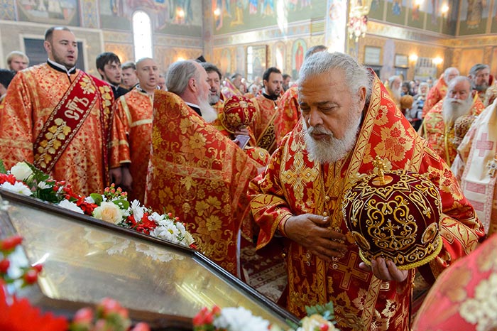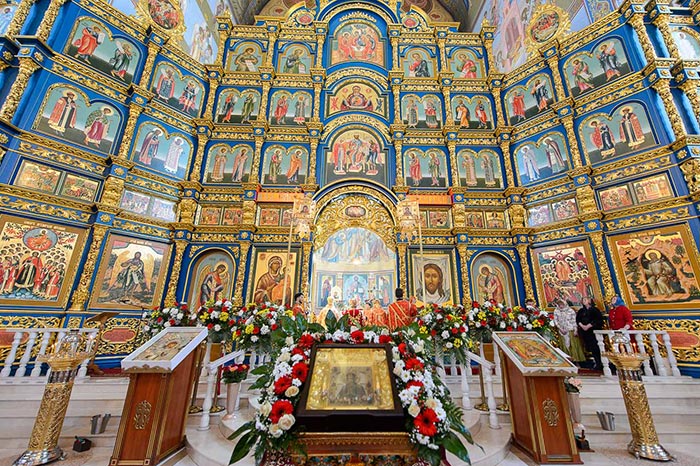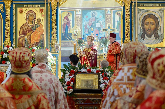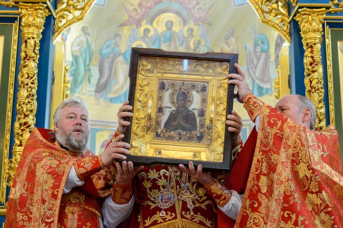 Литургия завершилась славлением перед мироточивой иконой Пресвятой Богородицы «Умягчение злых сердец».