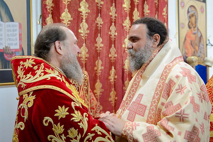 Также Главе Казахстанского Митрополичьего округа сослужили: настоятель храма святых равноапостольных Кирилла и Мефодия ставрофорный священноэконом Александр Георгиев (Болгарская Православная Церковь), архимандрит Серафим (Гавриков) (Кипрская Православная Церковь), протоиерей Николай Подолец (Польская Православная Церковь), благочинный приходов Алма-Аты протоиерей Валерий Захаров, духовник Богородице-Рождественского монастыря архимандрит Петр (Горошко), настоятель храма в честь иконы Божией Матери «Всех скорбящих радость» митрофорный протоиерей Евгений Воробьев, благочинный приходов Астаны архимандрит Сергий (Карамышев), благочинный приходов города Уральска, личный секретарь Управляющего Уральской епархией архимандрит Дионисий (Козулев), настоятель собора святых апостолов Петра и Павла и храма Равноапостольной Марии Магдалины города Петропавловска протоиерей Сергий Снопков, руководитель отдела по связям с общественностью Карагандинской епархии протоиерей Михаил Патрикеев, руководитель отдела Митрополичьего округа по связям с общественностью протоиерей Александр Суворов, руководители отделов и комиссий епархий Казахстанского Митрополичьего округа в священном сане; духовенство казахстанских епархий; клирики, прибывшие с гостями-архипастырями.