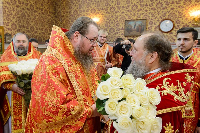 Главу Казахстанского Митрополичьего округа поздравили члены Синода Православной Церкви Казахстана – приветственный адрес зачитал епископ Петропавловский и Булаевский Владимир.