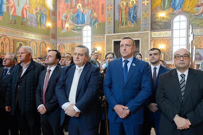За богослужением молились: настоятельница женского монастыря Астаны в честь иконы Божией Матери «Взыскание погибших» игумения Рафаила (Василенко) с насельницами обители, настоятельница Покровского женского монастыря города Уральска игумения Варвара (Морозова), секретарь Казахстанского Митрополичьего округа, Заслуженный деятель искусств России О.Н. Овчинников, начальник Департамента по взаимодействию с общественными организациями в аппарате полномочного представителя Президента Российской Федерации в Центральном федеральном округе, советник полномочного представителя Президента Российской Федерации в Центральном федеральном округе М.Н. Белогубова, председатель православного общества «Скиния», церковный и общественный деятель А.В. Бугаевский, благотворители Казахстанского Митрополичьего округа, сотрудники Астанайского епархиального управления, активисты православного молодежного движения столицы, преподаватели и воспитанники центральной воскресной школы.