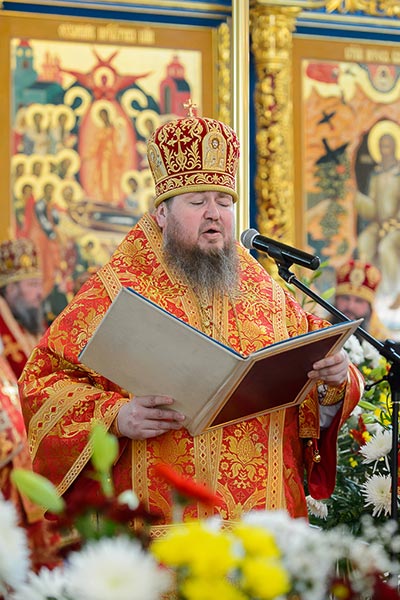 По запричастном стихе было оглашено приветствие Святейшего Патриарха Московского и всея Руси Кирилла по случаю празднования 145-летия учреждения Туркестанской епархии, после чего руководитель издательского отдела Митрополичьего округа архимандрит Иосиф (Еременко) произнес проповедь.