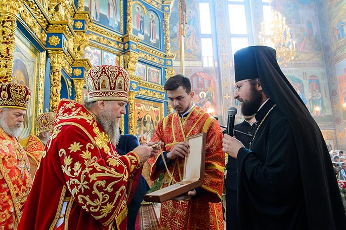Было возглашено многолетие Предстоятелю Русской Православной Церкви Святейшему Патриарху Московскому и всея Руси Кириллу; Главе и епископату Казахстанского Митрополичьего округа, гостям архипастырям; Президенту страны Н.А. Назарбаеву; властям, воинству и всему народу Казахстана.