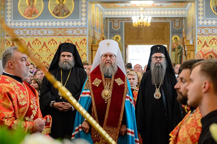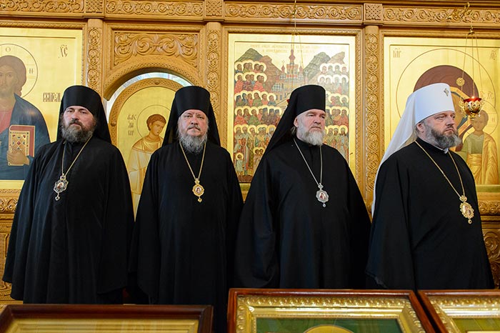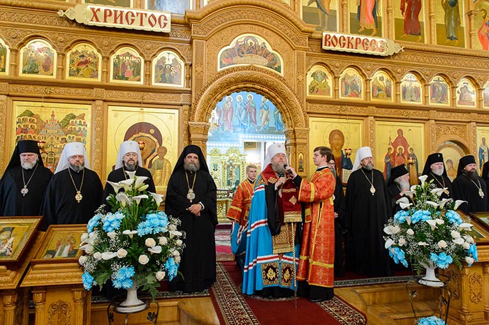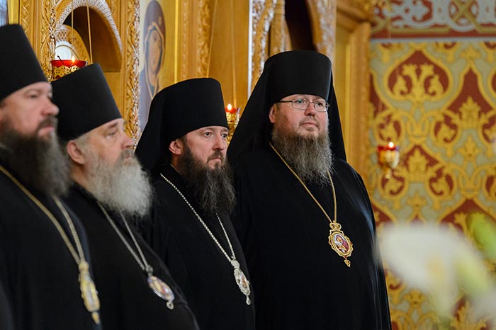 Главе Казахстанского Митрополичьего округа сослужили: митрополит Тамасосский и Оринийский Исаия (Кипрская Православная Церковь), митрополит Пловдивский Николай (Болгарская Православная Церковь), председатель Синодального миссионерского отдела Русской Православной Церкви митрополит Белгородский и Старооскольский Иоанн, председатель Синодального миссионерского отдела Украинской Православной Церкви митрополит Полтавский и Миргородский Филипп, глава Кузбасской митрополии митрополит Кемеровский и Прокопьевский Аристарх, архиепископ Белостокский и Гданьский Иаков (Польская Православная Церковь), архиепископ Уральский и Актюбинский Антоний, архиепископ Чимкентский и Таразский Елевферий, епископ Гурий (Шалимов), епископ Костанайский и Рудненский Анатолий, епископ Талдыкорганский Нектарий, епископ Павлодарский и Экибастузский Варнава, епископ Карагандинский и Шахтинский Севастиан, епископ Усть-Каменогорский и Семипалатинский Амфилохий, епископ Кокшетауский и Акмолинский Серапион, епископ Петропавловский и Булаевский Владимир, викарий Пловдивской епархии епископ Знепольский Арсений (Болгарская Православная Церковь); благочинный Алма-Аты протоиерей Валерий Захаров, руководители епархиальных отделов и комиссий в священном сане; настоятели и духовенство храмов Алма-Атинской епархии, клирики, прибывшие с гостями-архипастырями.