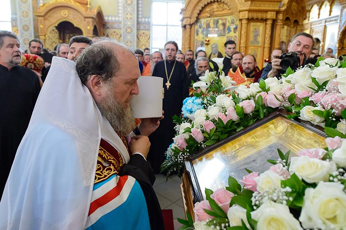 По окончании богослужения митрополит Александр поздравил собравшихся с великим и знаменательным событием – принесением в Южную столицу Казахстана чудотворной иконы Божией Матери «Умягчение злых сердец», открывшее собой празднование в Алма-Ате 145-летия создания Туркестанской епархии.