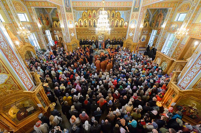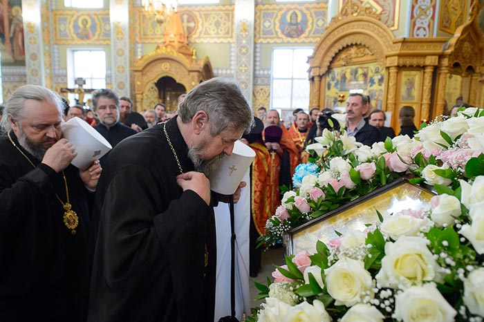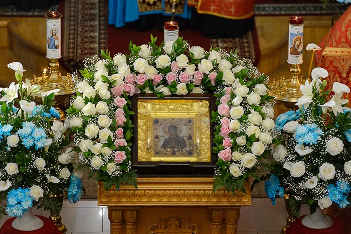 На протяжении вечернего времени в Софийском соборе перед киотом с чудотворным образом непрерывно совершались молебны и происходило поклонение верующих.
